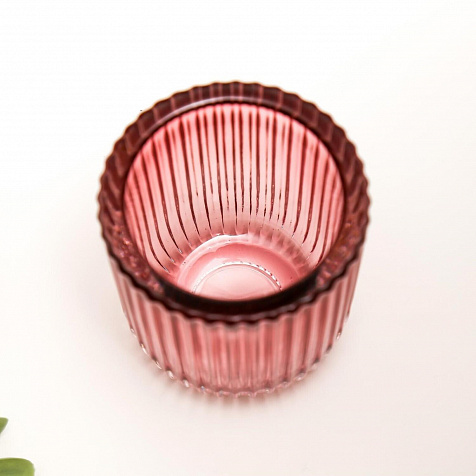Подсвечник стекло на 1 свечу "Гофре" прозрачный розовый 7,5х7,4х7,4 см