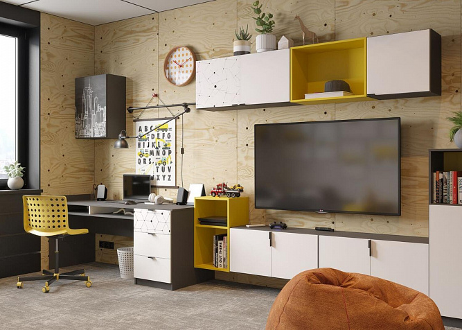 Боксы, модули, стеллажи. Много разнообразных вариантом для организации порядка в комнате ребенка. Из них легко получается ТВ-зона.