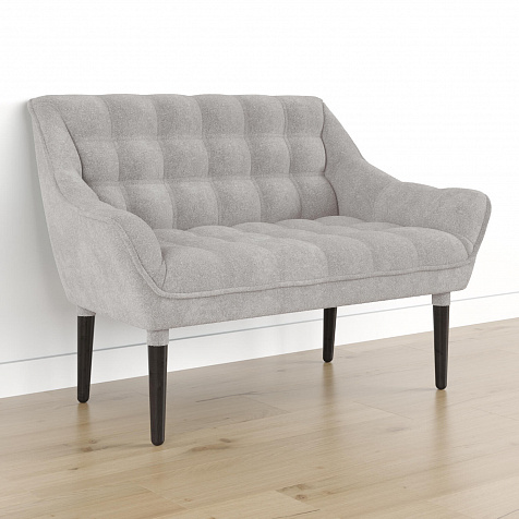 Мини-диван «Блафф» — сочетание визуальной воздушности и легкости за счет объемного канта и высоких деревянных опор. Компактные размеры позволяют гармонично разместить «Блафф» как в просторной гостиной, так и в небольшой кухне. Также, компактность дивана дает возможность легко перемещать его и менять обстановку в помещении. Задняя часть спинки выполнена в обивочной ткани, что позволяет разместить диван в центре комнаты.
