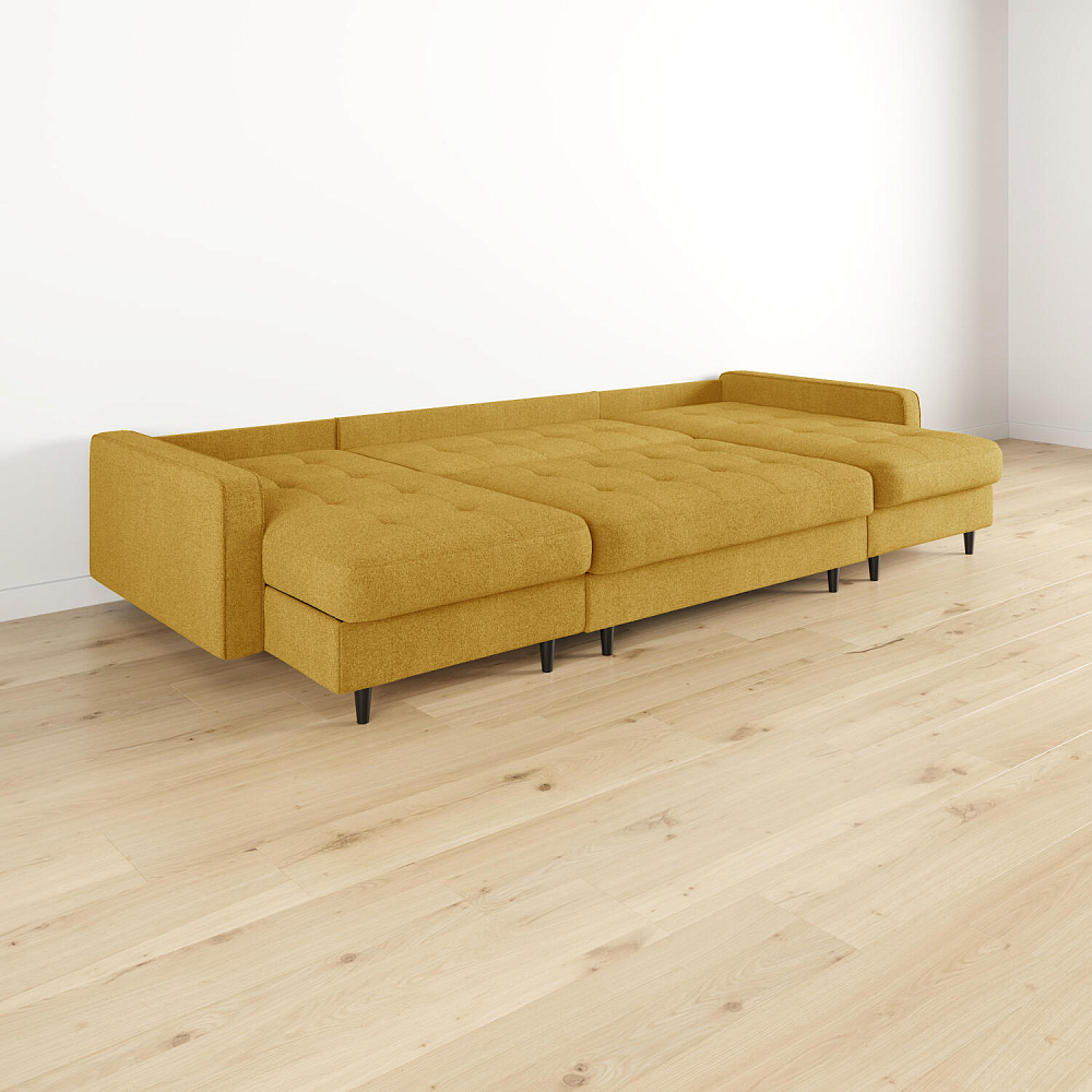 - Легкая уборка под диваном. Высокие опоры позволяют сохранять чистоту, в том числе и с помощью робота-пылесоса.