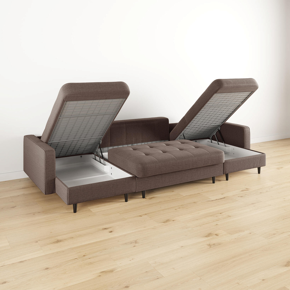 - Легкая уборка под диваном. Высокие опоры позволяют сохранять чистоту, в том числе и с помощью робота-пылесоса.