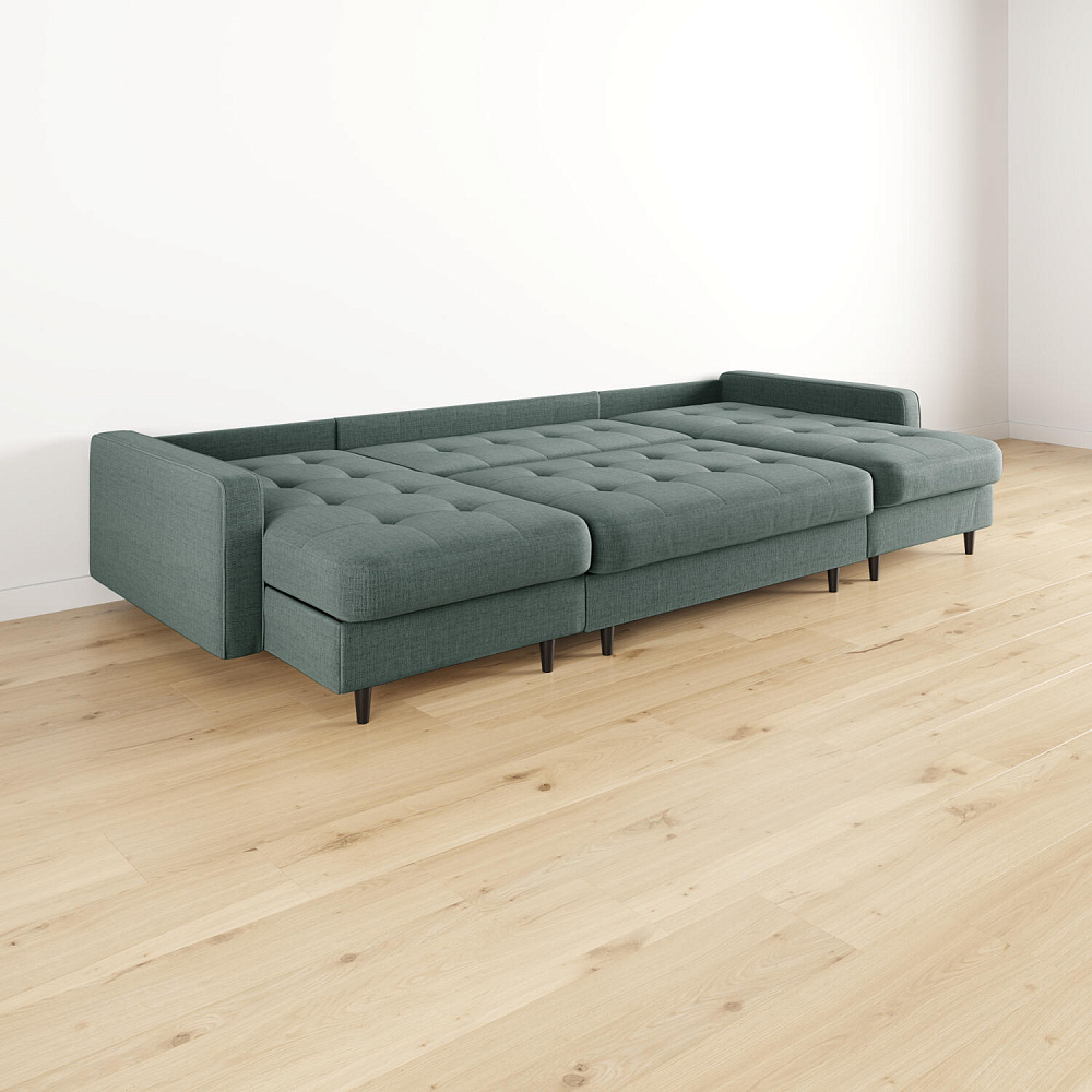 - Легкая уборка под диваном. Высокие опоры позволяют сохранять чистоту, в том числе и с помощью робота-пылесоса.