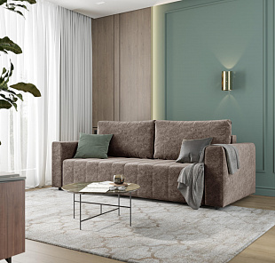 - Обивка из рогожки. Неоднородные меланжевые вкрапления придают дивану графичность и визуальную лёгкость. Рогожка не выцветает, хорошо пропускает воздух и надолго сохраняет первоначальный вид.