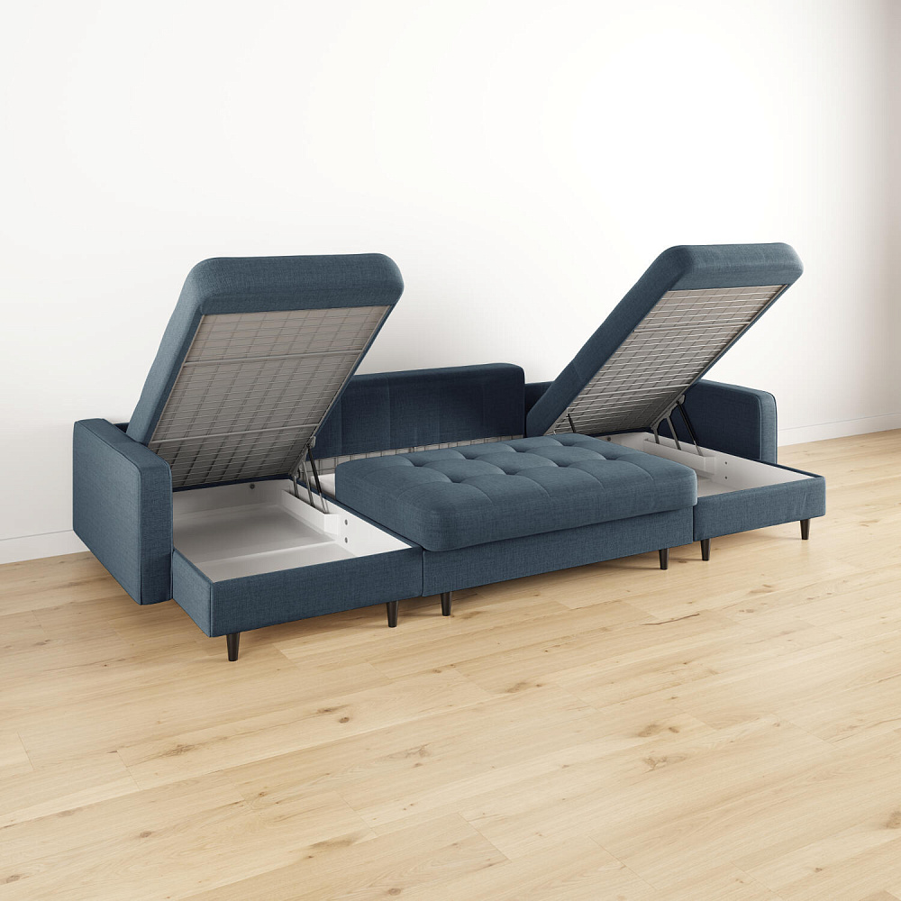 - Легкая уборка под диваном. Высокие опоры позволяют сохранять чистоту, в том числе и с помощью робота-пылесоса.