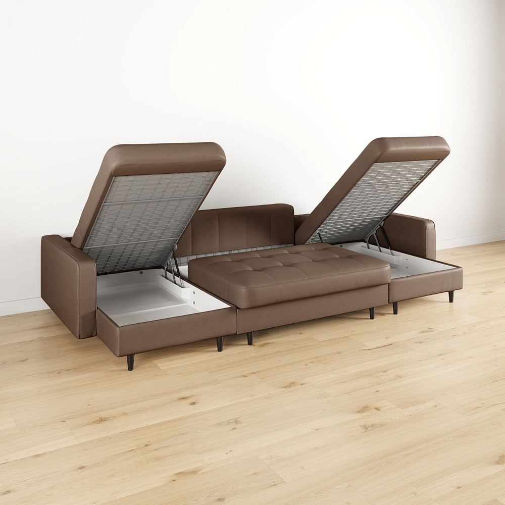 - Легкая уборка под диваном. Высокие опоры позволяют сохранять чистоту, в том числе и с помощью робота-пылесоса.