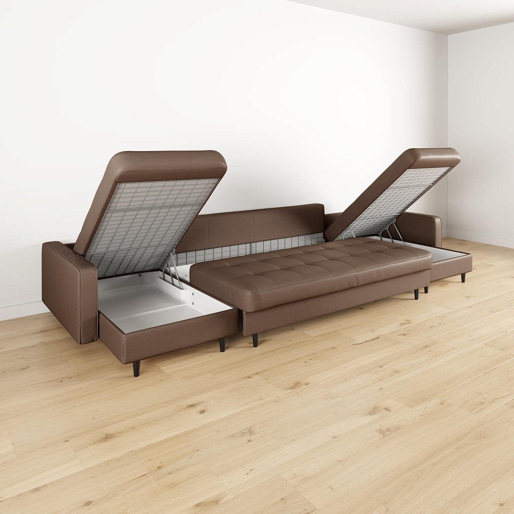 - Легкая уборка под диваном. Высокие опоры позволяют сохранять чистоту, в том числе и с помощью робота-пылесоса.