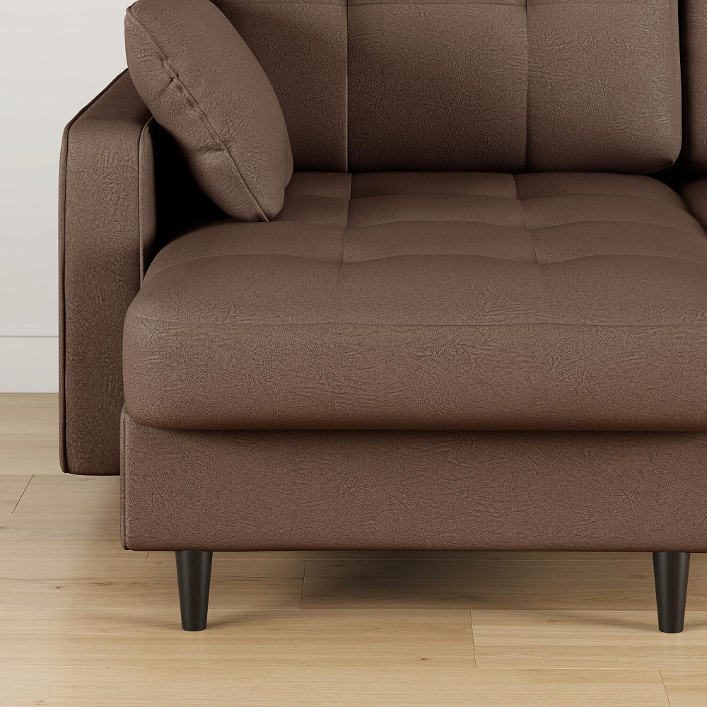 - Обивка из искусственной кожи. Прочная и эластичная ткань придаёт дивану роскошный вид. Материал имеет гладкую текстуру, что обеспечивает лёгкую чистку дивана.