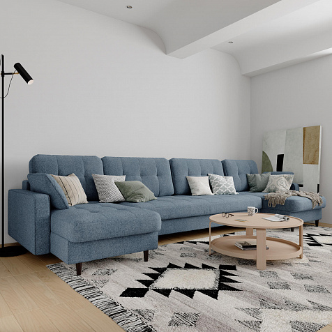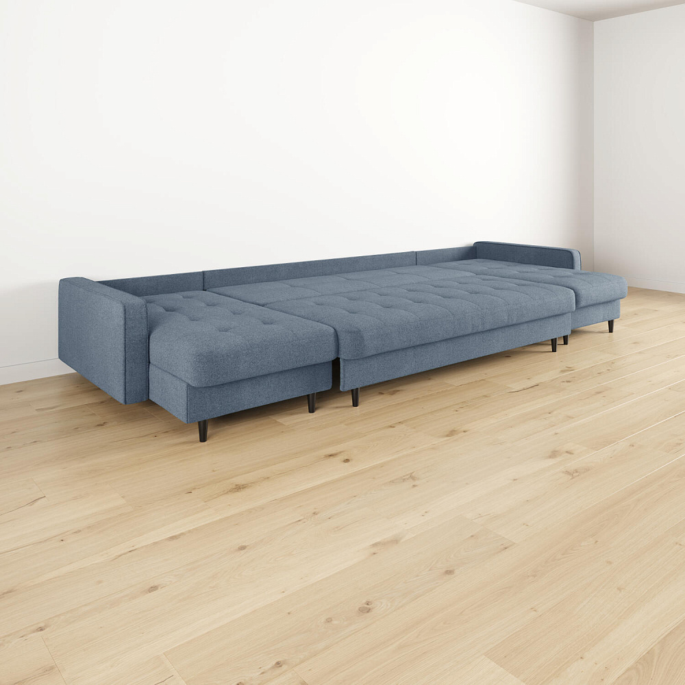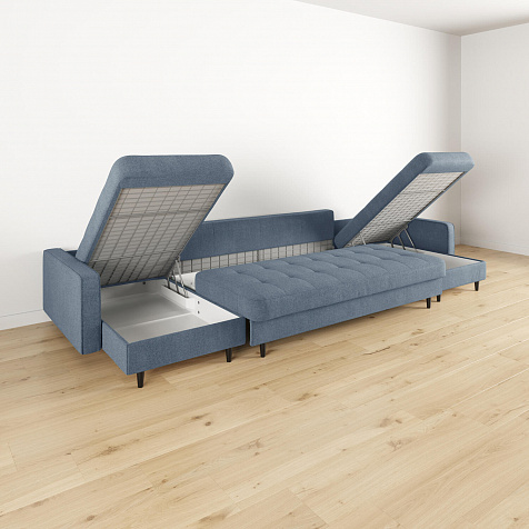 - Легкая уборка под диваном. Высокие опоры позволяют сохранять чистоту, в том числе и с помощью робота-пылесоса.