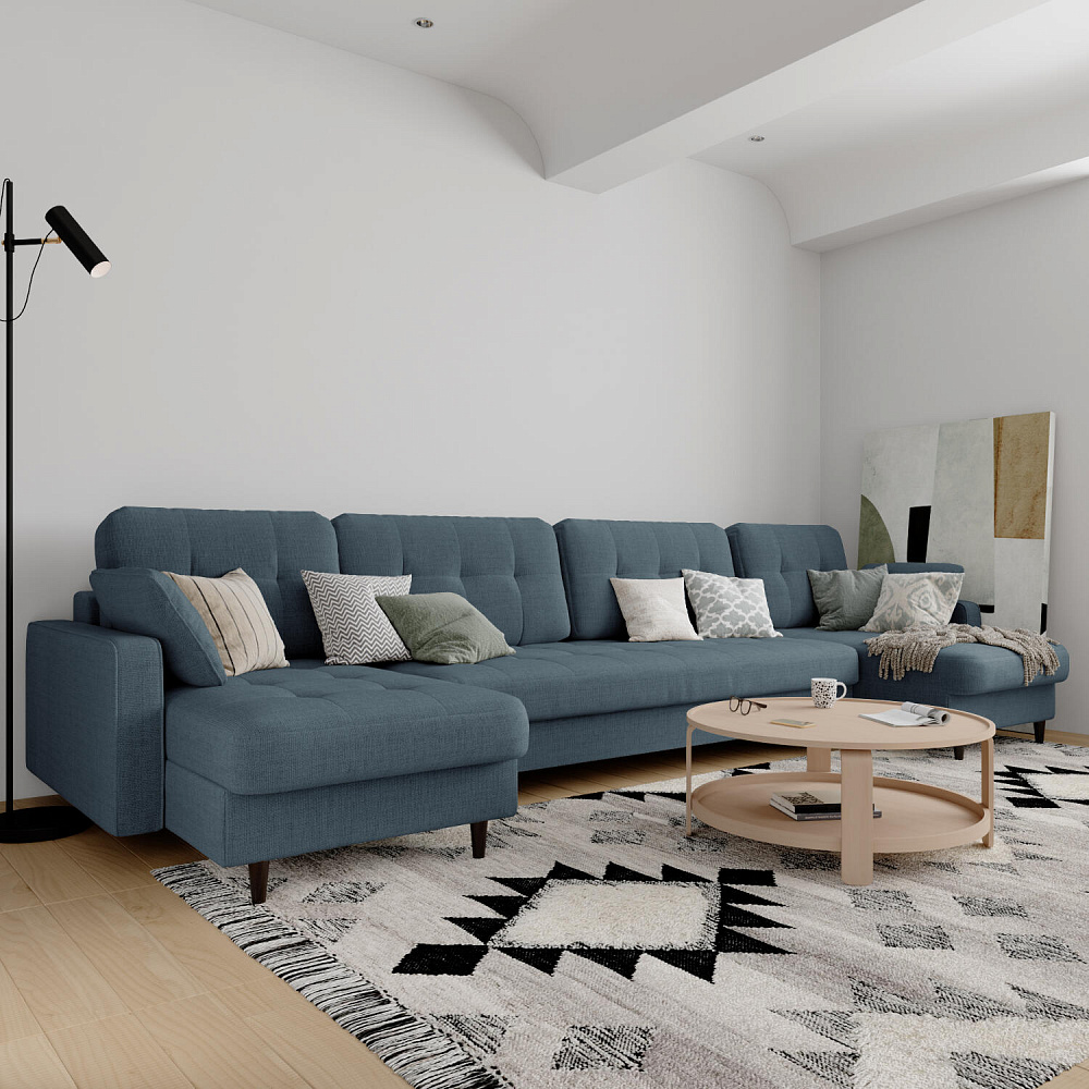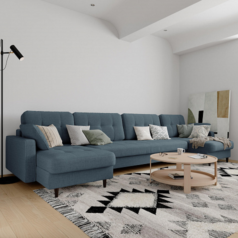 - Легкая уборка под диваном. Высокие опоры позволяют сохранять чистоту, в том числе и с помощью робота-пылесоса.
