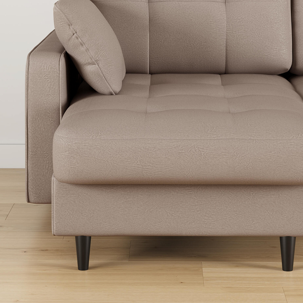 - Обивка из искусственной кожи. Прочная и эластичная ткань придаёт дивану роскошный вид. Материал имеет гладкую текстуру, что обеспечивает лёгкую чистку дивана.