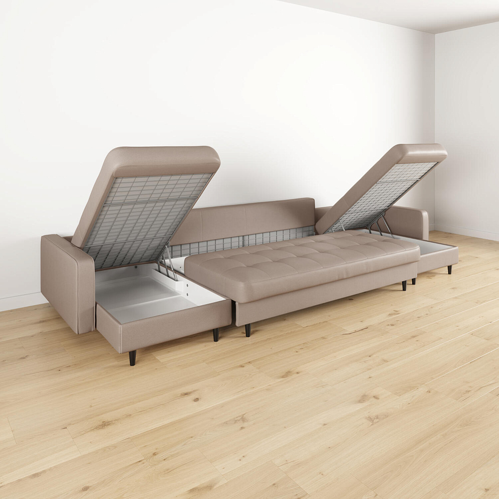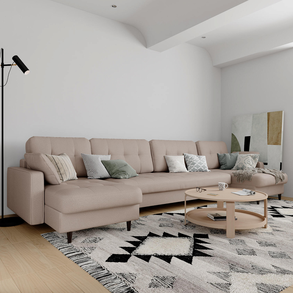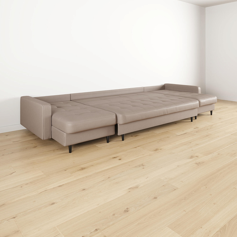 - Легкая уборка под диваном. Высокие опоры позволяют сохранять чистоту, в том числе и с помощью робота-пылесоса.