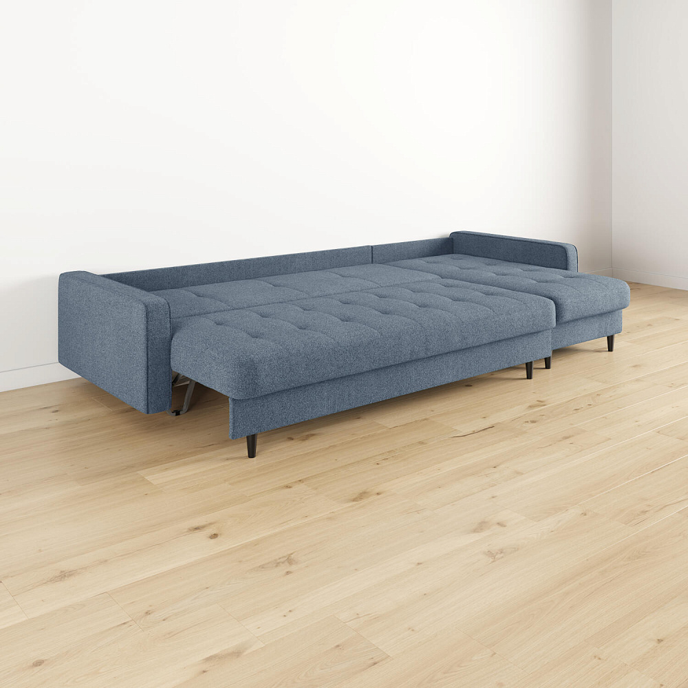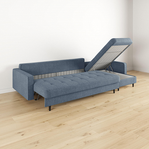 - Легкая уборка под диваном. Высокие опоры позволяют сохранять чистоту, в том числе и с помощью робота-пылесоса.