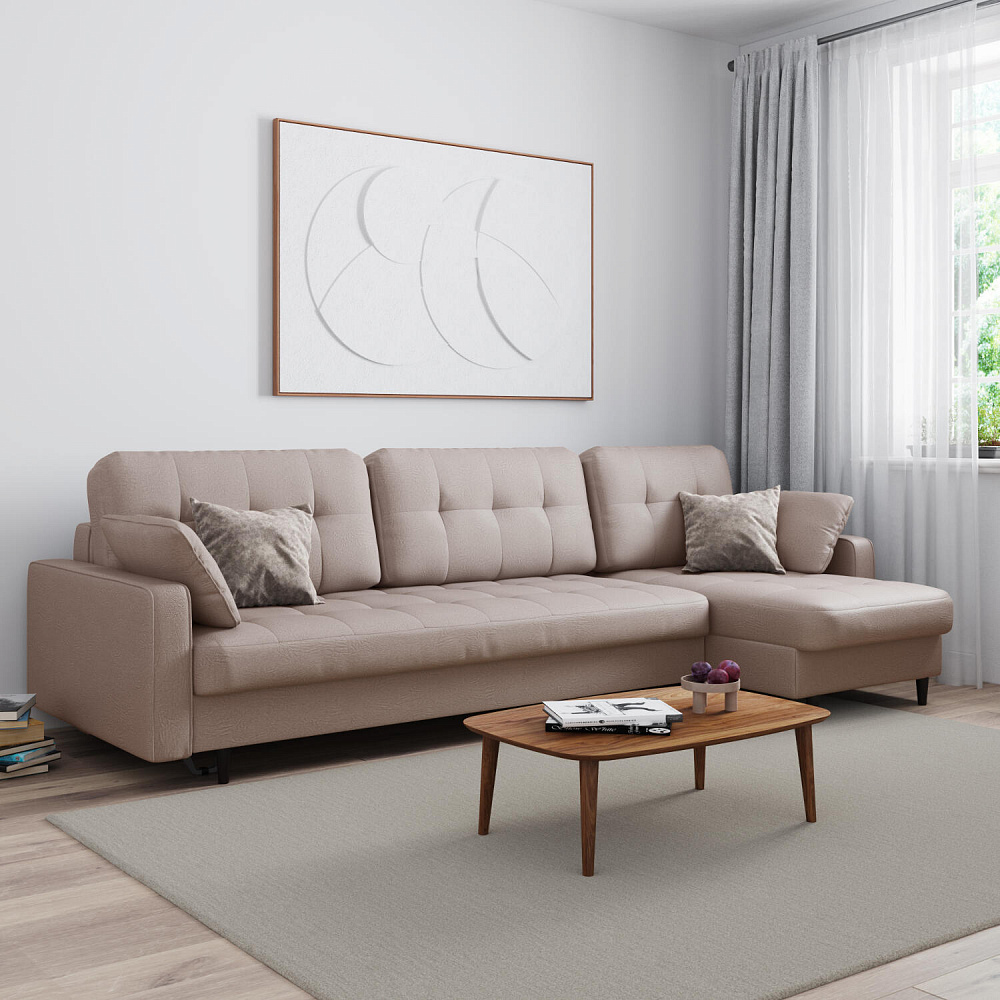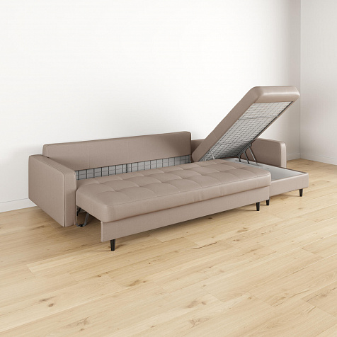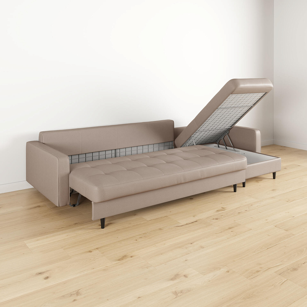 - Легкая уборка под диваном. Высокие опоры позволяют сохранять чистоту, в том числе и с помощью робота-пылесоса.