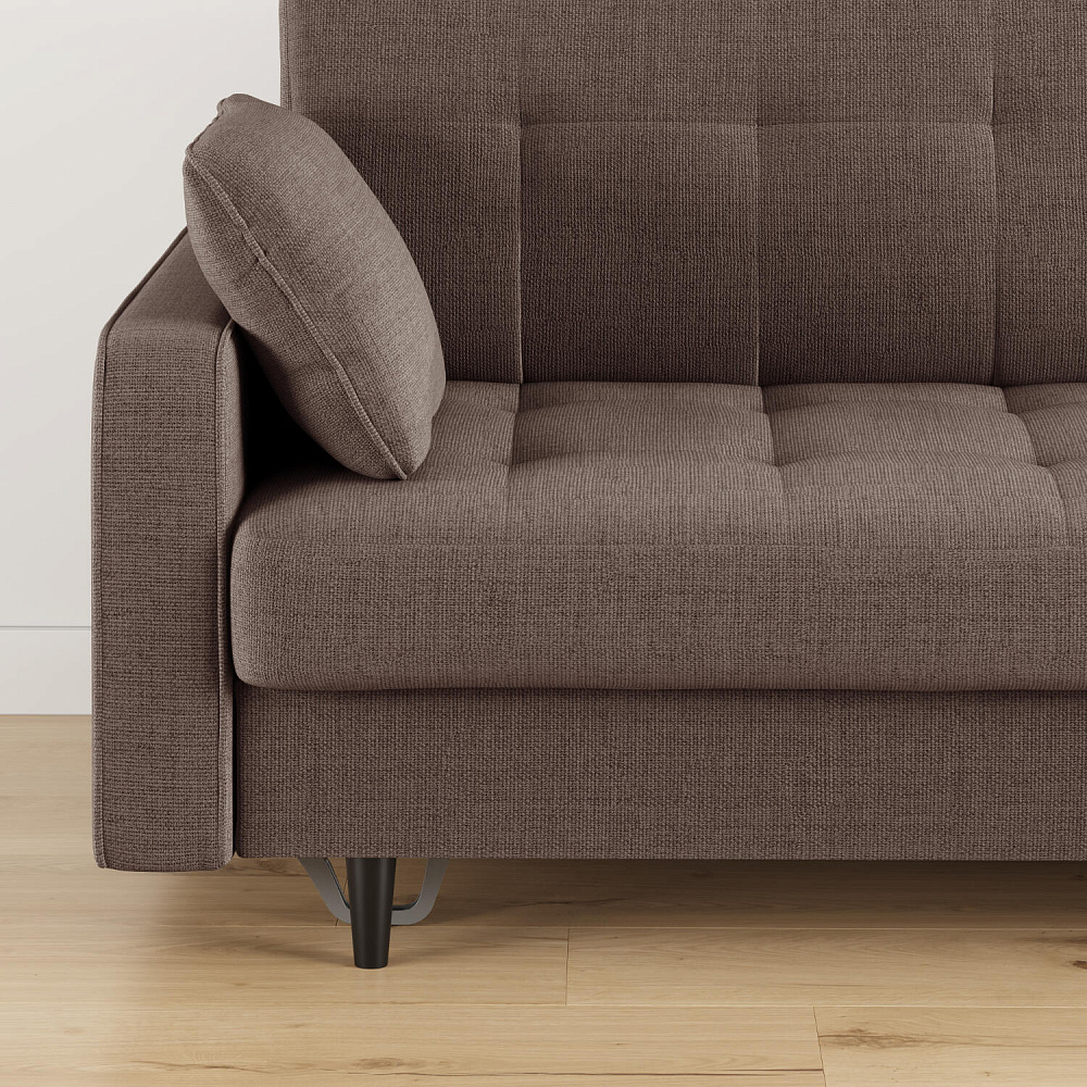 - Обивка из рогожки. Неоднородные меланжевые вкрапления придают дивану графичность и визуальную лёгкость. Рогожка не выцветает, хорошо пропускает воздух и надолго сохраняет первоначальный вид.