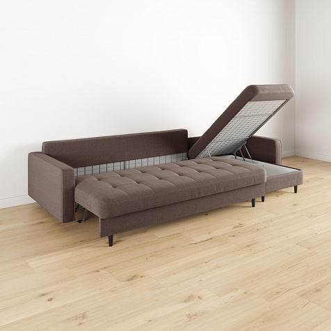 - Легкая уборка под диваном. Высокие опоры позволяют сохранять чистоту, в том числе и с помощью робота-пылесоса.