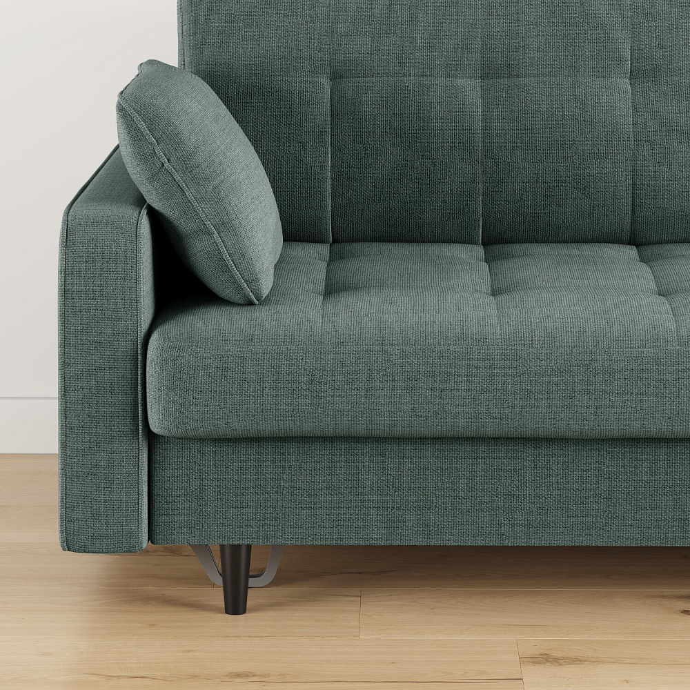 - Обивка из рогожки. Неоднородные меланжевые вкрапления придают дивану графичность и визуальную лёгкость. Рогожка не выцветает, хорошо пропускает воздух и надолго сохраняет первоначальный вид.