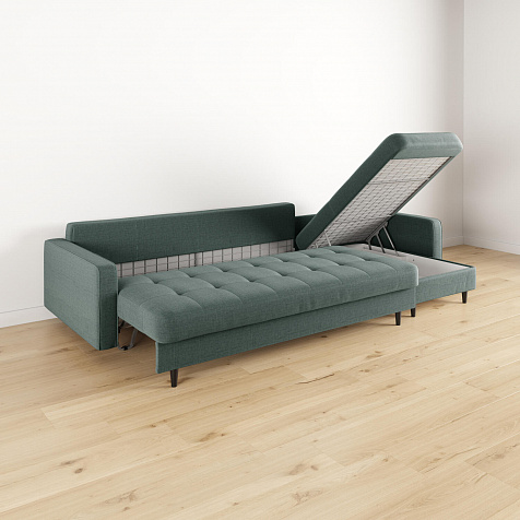 - Легкая уборка под диваном. Высокие опоры позволяют сохранять чистоту, в том числе и с помощью робота-пылесоса.