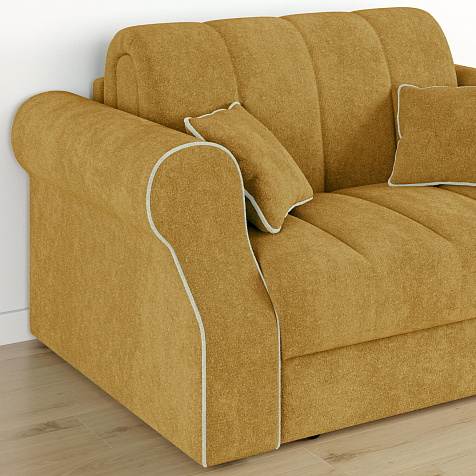 Диван «Париж» идеально подойдёт для обустройства гостевых, компактных спален и детских комнат, где нет возможности разместить классическую кровать. Диван с удобными подлокотниками и глубоким сиденьем позволит максимально расслабиться после тяжёлого дня. Благодаря простому в использовании механизму трансформации «Аккордеон», диван легко превращается в кровать с ровным спальным местом. Плавность форм и лаконичность модели подчёркивают акцентные линии декоративного канта.
