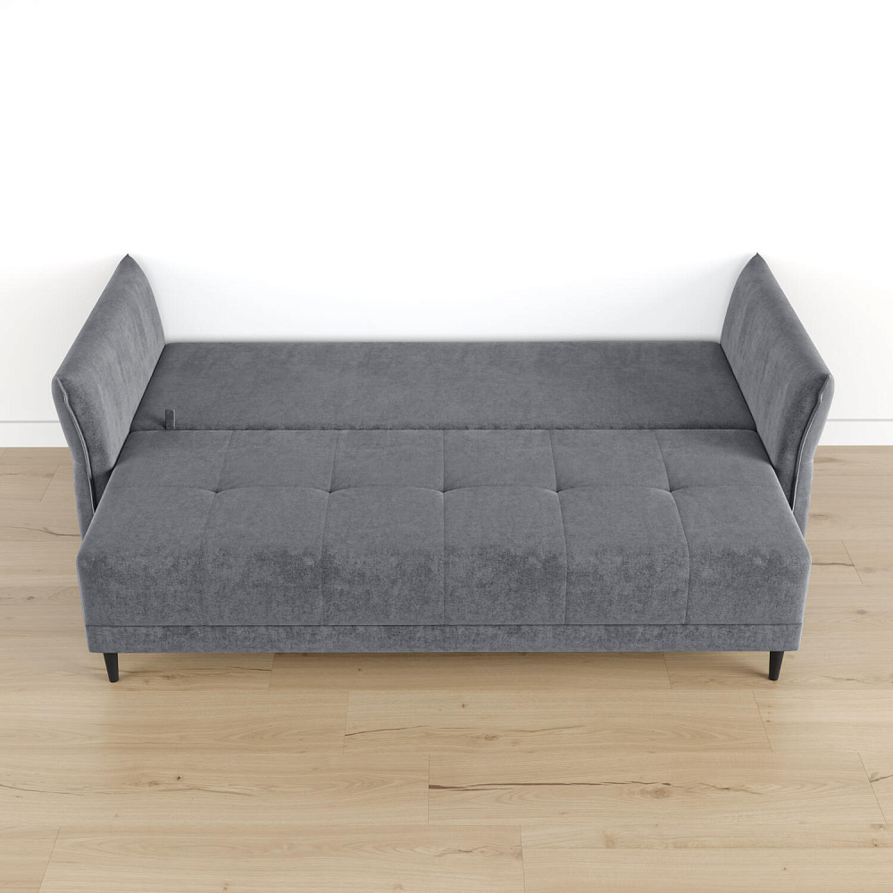 Механизм трансформации «Еврокнижка». Диван легко раскладывается — нужно выдвинуть вперед сиденье и опустить спинку. Удобен механизм ещё тем, что двигается только передняя часть, поэтому отодвигать диван от стены не требуется.