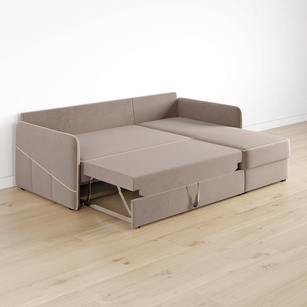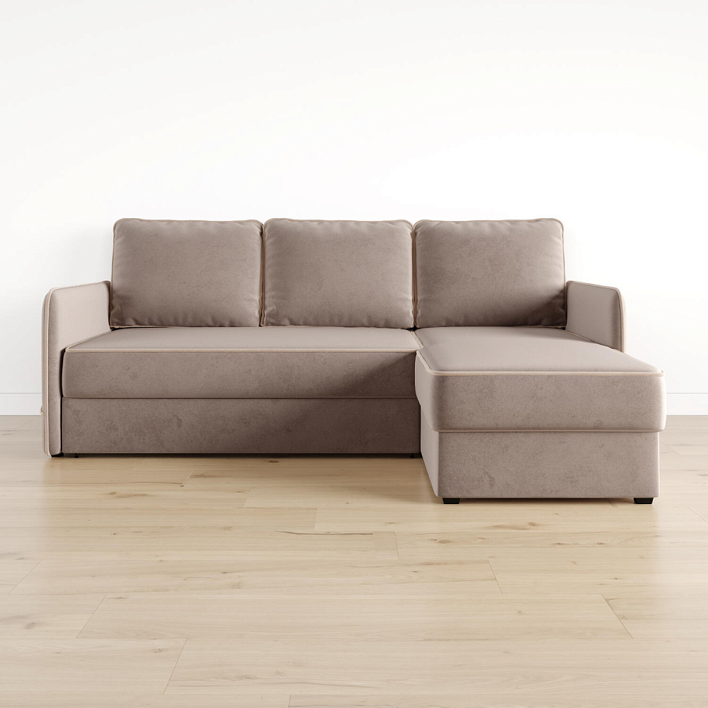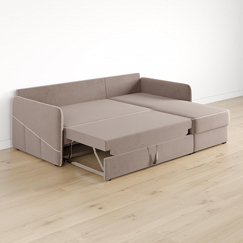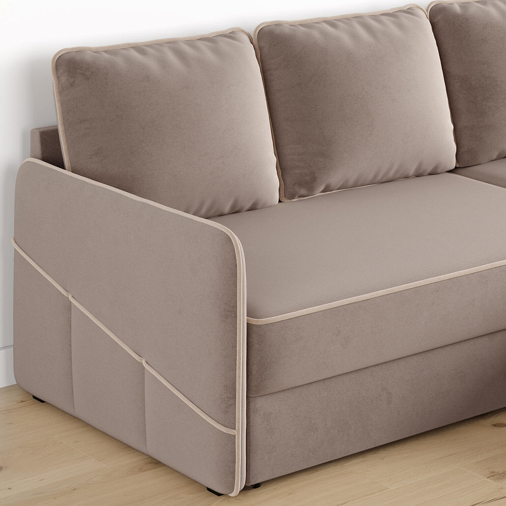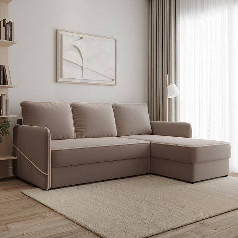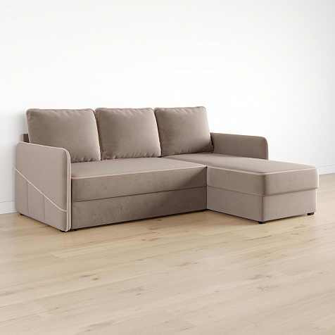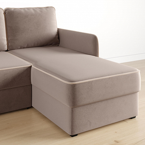 Диван угловой «Симпл» станет стильным акцентом в современной гостиной. Контрастный кант на обивке из мягкого велюра придаёт дизайну дивана завершённый вид и подчёркивает мягкую геометричность. Механизм трансформации «Дельфин» в сложенном виде позволяет сэкономить пространство в комнате, в разложенном — обеспечивает комфортное и ровное спальное место. Спинка дивана выполнена в той же обивке, что и основная часть, что даёт возможность использовать диван для зонирования комнаты.