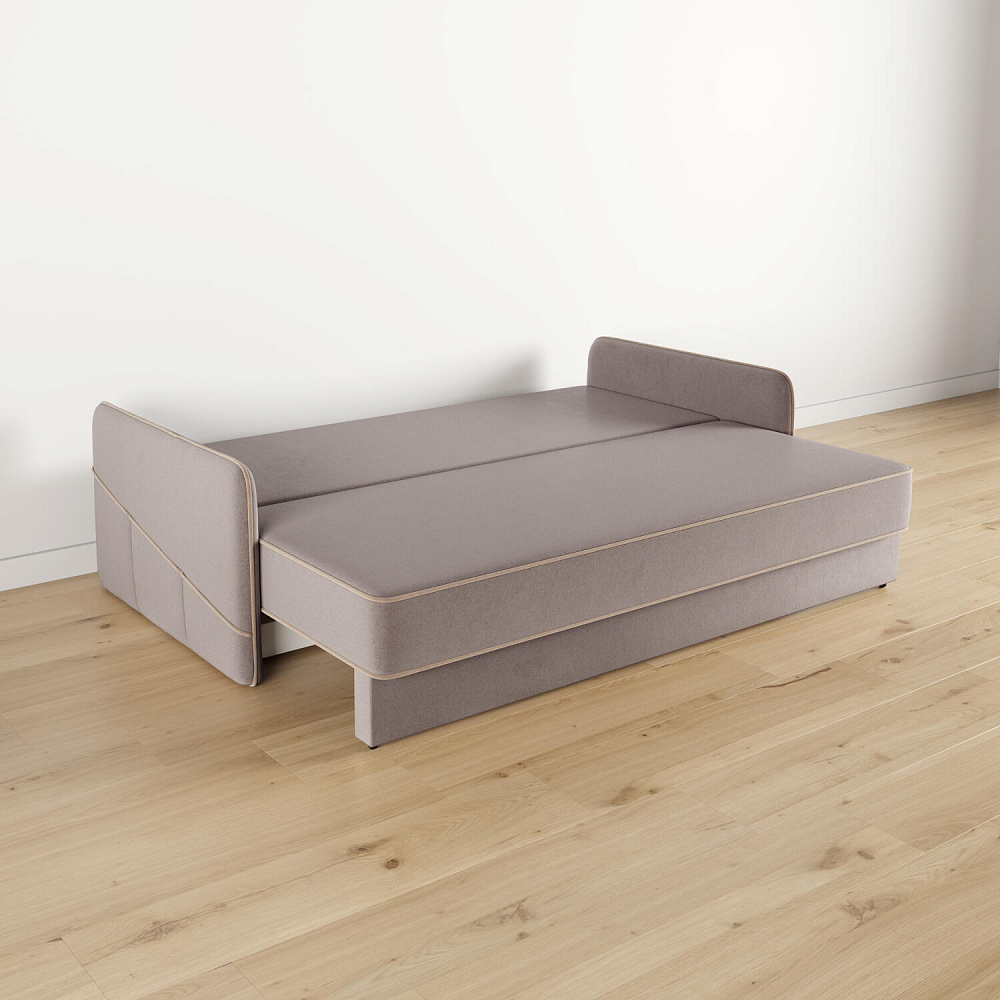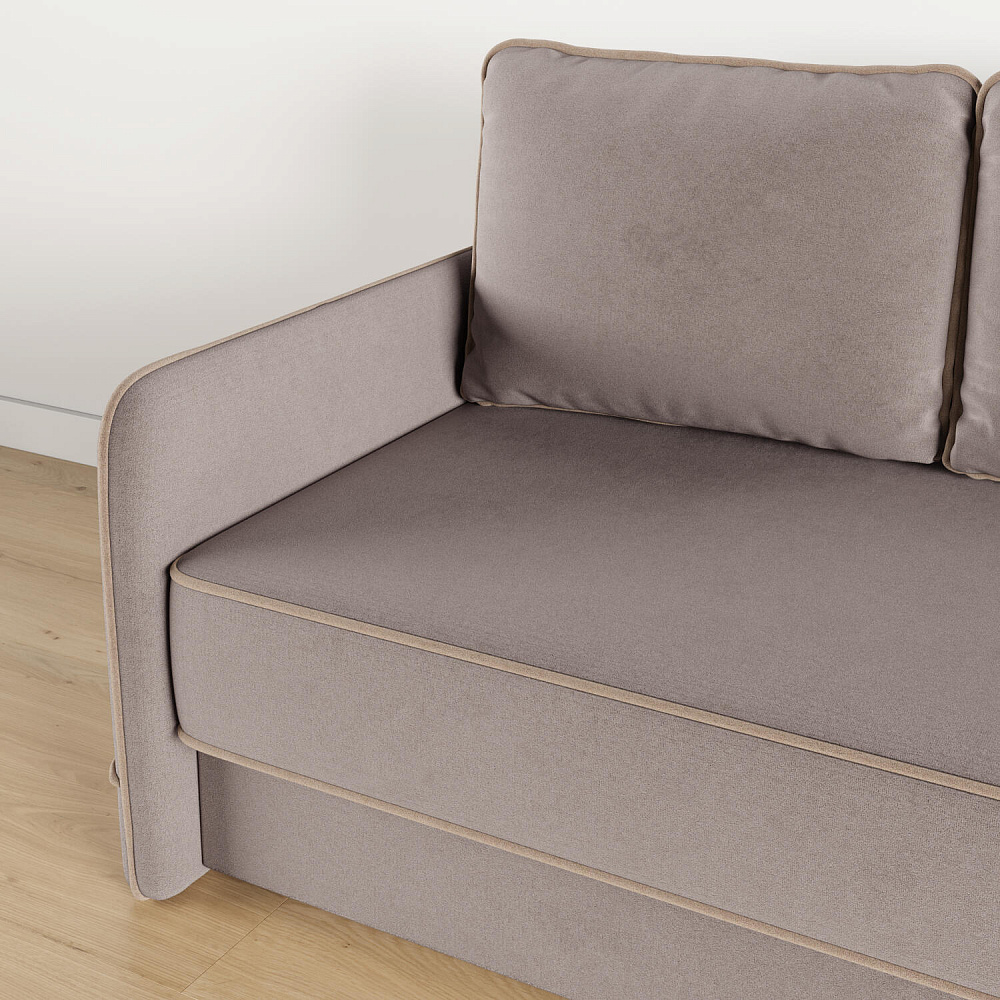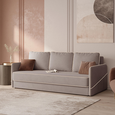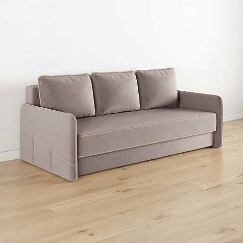 Диван «Симпл» станет стильным акцентом в современной гостиной. Контрастный кант на обивке из мягкого велюра придаёт дизайну дивана завершённый вид и подчёркивает мягкую геометричность. Механизм трансформации «Еврокнижка» в сложенном виде позволяет сэкономить пространство в комнате, в разложенном — обеспечивает комфортное и ровное спальное место. Спинка дивана выполнена в той же обивке, что и основная часть, что даёт возможность использовать диван для зонирования комнаты.