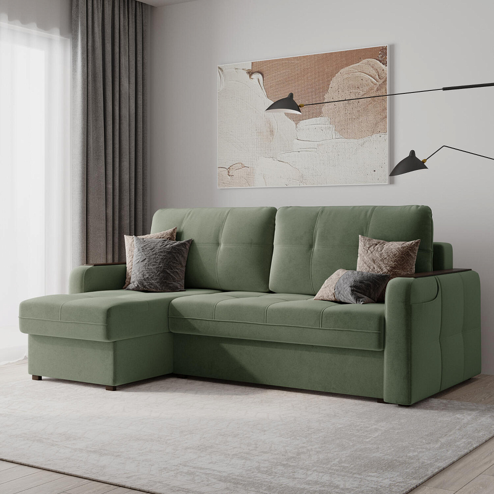 Универсальный угол. Диван подстроится под условия помещения — оттоманка крепится как слева, так и справа.