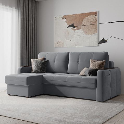 Универсальный угол. Диван подстроится под условия помещения — оттоманка крепится как слева, так и справа.