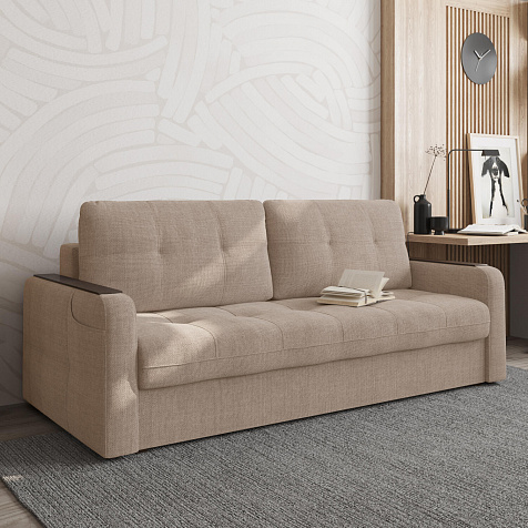 Диван-кровать «Киль-3» — это удобная и функциональная мягкая мебель. Благодаря своему лаконичному дизайну модель может стать центральным элементом интерьера комнаты. Комфортабельное спальное место подходит для ежедневного сна. Дополнительный комфорт обеспечивают накладки на подлокотниках. Приспинные подушки позволяют удобно разместиться на диване, накладку на подлокотнике можно использовать как подставку для чашечки с любимым напитком.