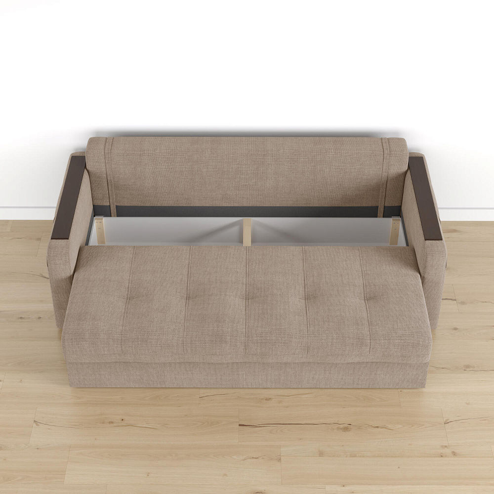 Размер спального места — 200 х 150 см. Полноценная кровать с ровным спальным местом подойдёт для ежедневного сна одного-двух человек.