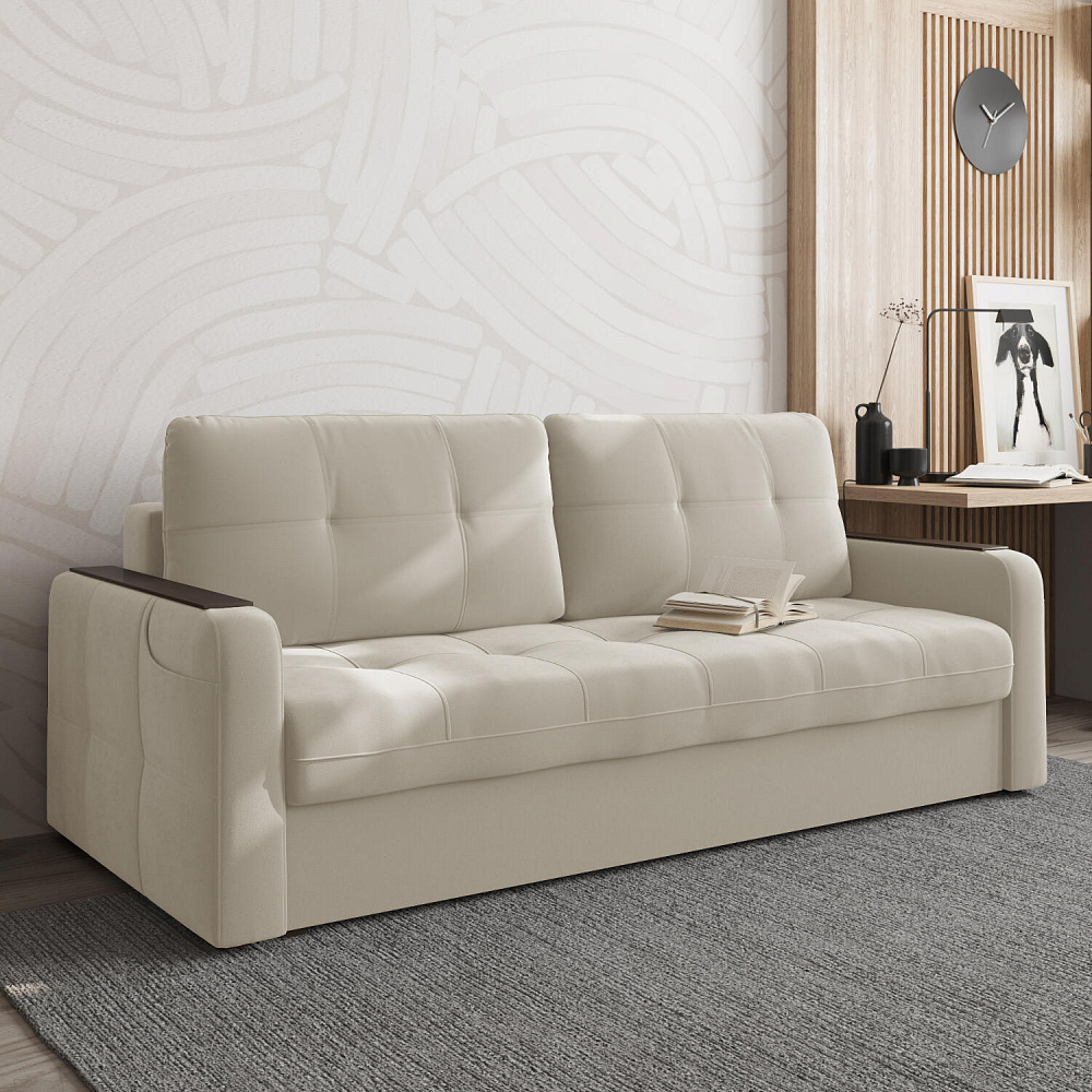 Диван-кровать «Киль-3» — это удобная и функциональная мягкая мебель. Благодаря своему лаконичному дизайну модель может стать центральным элементом интерьера комнаты. Комфортабельное спальное место подходит для ежедневного сна. Дополнительный комфорт обеспечивают накладки на подлокотниках. Приспинные подушки позволяют удобно разместиться на диване, накладку на подлокотнике можно использовать как подставку для чашечки с любимым напитком.