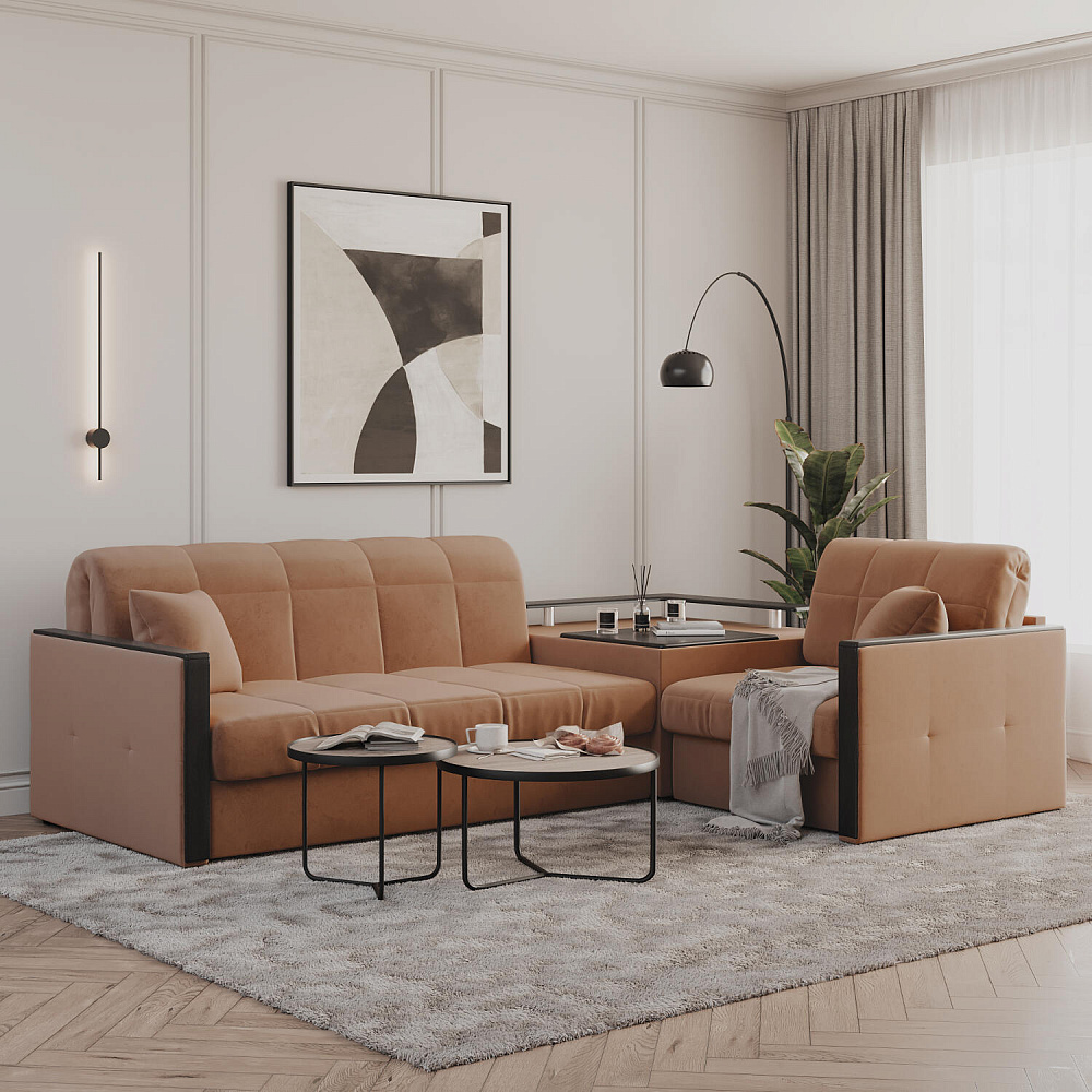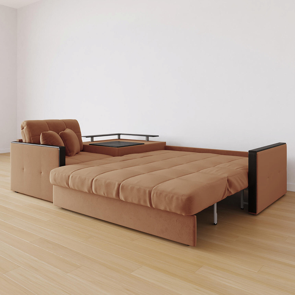 Угловой диван «Бристоль» с баром станет главным местом для отдыха и приема гостей. Модель оснащена баром, на котором можно расположить еду и напитки во время просмотра фильмов и сериалов. Вместительный короб и ящик для постельных принадлежностей. Благодаря механизму трансформации «Аккордеон» диван легко превращается в полноценную кровать для двух человек. Пропорциональные формы, плавные линии декоративного канта подчеркивают лаконичный дизайн, поэтому диван подойдет для любого современного интерьера.