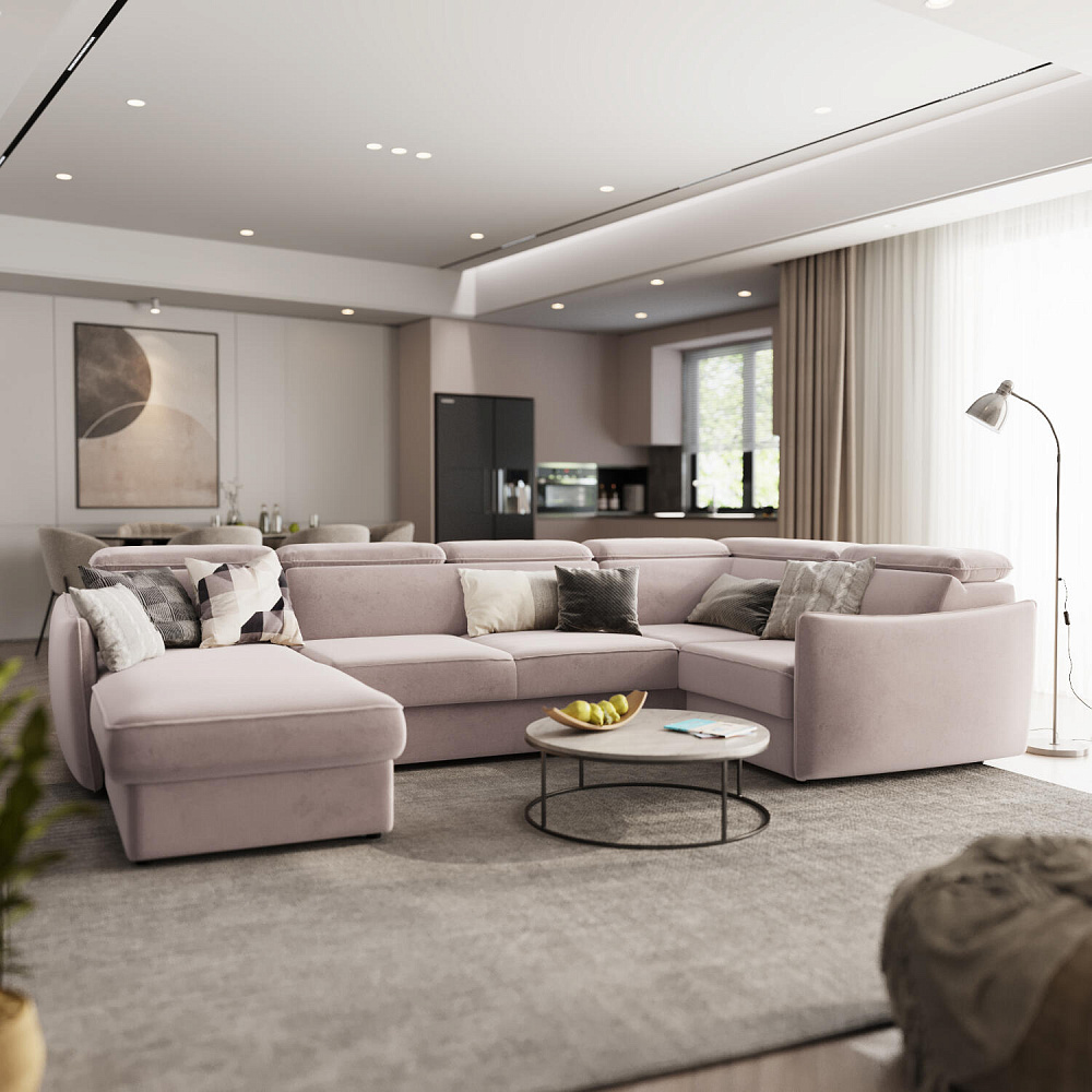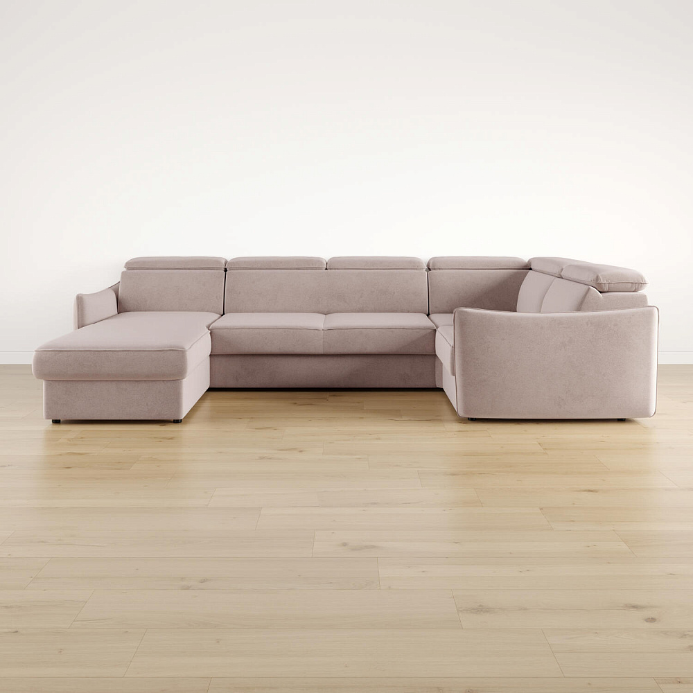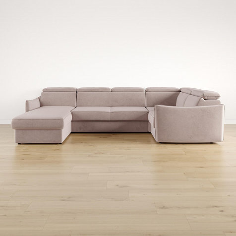 Широкий П-образный диван «Торонто» — идеальное решение для просторной гостиной и большой семьи. Благодаря своим габаритам модель подойдет для семейного просмотра фильмов и встречи гостей. Механизм трансформации «Дельфин» обеспечивает ровное спальное место, что идеально подходит для ежедневного сна. Регулируемые подголовники имеют шесть положений, поэтому можно подобрать подходящее положение и с комфортном расслабиться после рабочего дня. В кресельной части установлен ящик для хранения постельного белья и других вещей. Аккуратная отсрочка на подлокотниках и подголовниках завершают строгий образ модели.