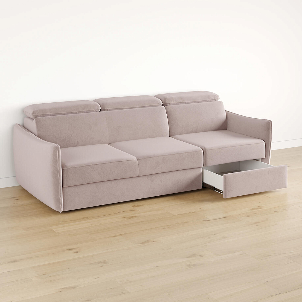 Диван «Торонто» — лаконичная модель станет частью уютной гостиной в современном стиле или лофт. Благодаря выкатному механизму диван легко раскладывается одним движением, что идеально подходит для ежедневного сна. Регулируемые подголовники имеют шесть положений, поэтому можно подобрать подходящее положение для комфортного отдыха. В кресельной части установлен ящик для хранения постельного белья и других вещей. Аккуратная отсрочка на подлокотниках и подголовниках завершают строгий образ модели.