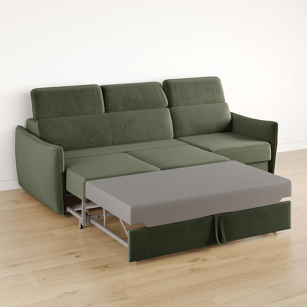 - Механизм трансформации «Выкатной». Удобный и практичный механизм быстро превращает диван в полноценную кровать с ровным и широким спальным местом.