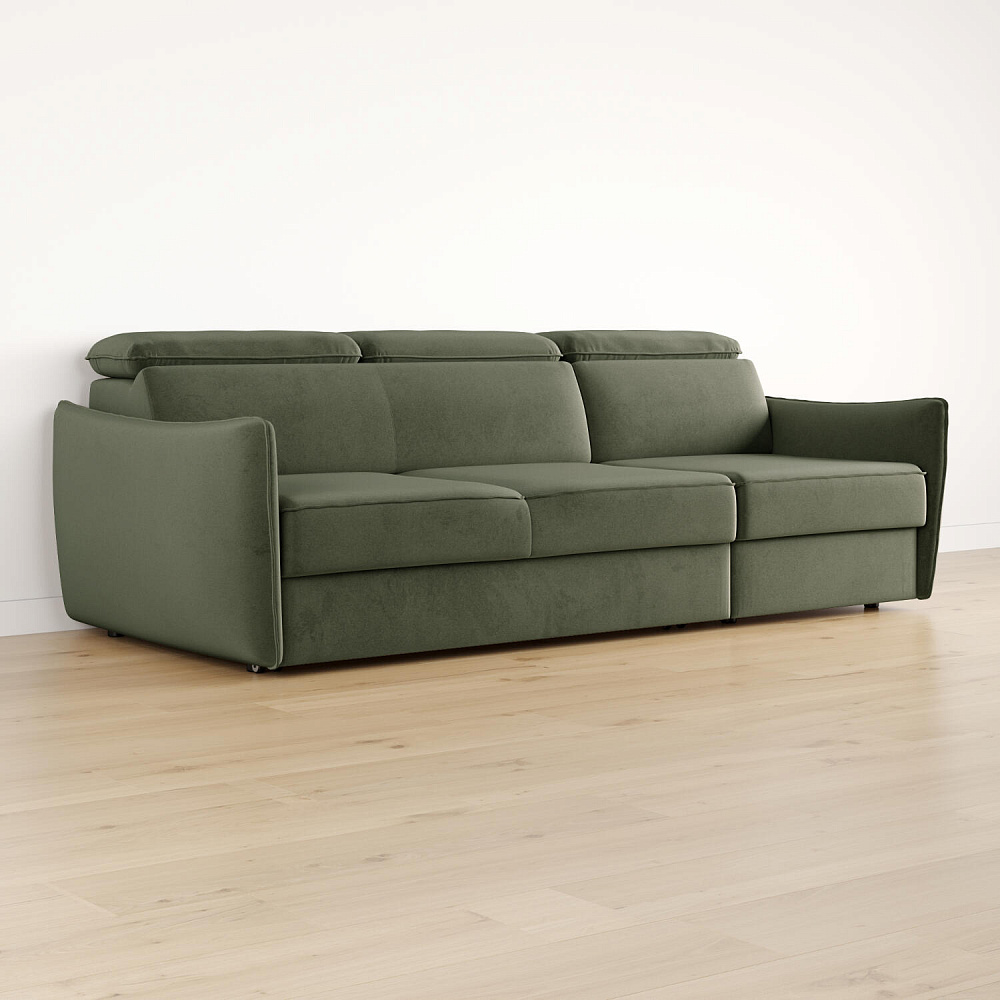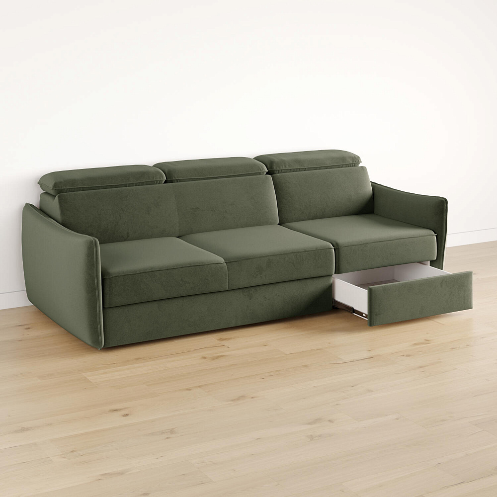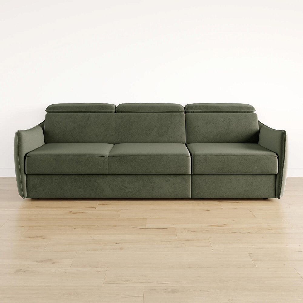 Диван «Торонто» — лаконичная модель станет частью уютной гостиной в современном стиле или лофт. Благодаря выкатному механизму диван легко раскладывается одним движением, что идеально подходит для ежедневного сна. Регулируемые подголовники имеют шесть положений, поэтому можно подобрать подходящее положение для комфортного отдыха. В кресельной части установлен ящик для хранения постельного белья и других вещей. Аккуратная отсрочка на подлокотниках и подголовниках завершают строгий образ модели.
