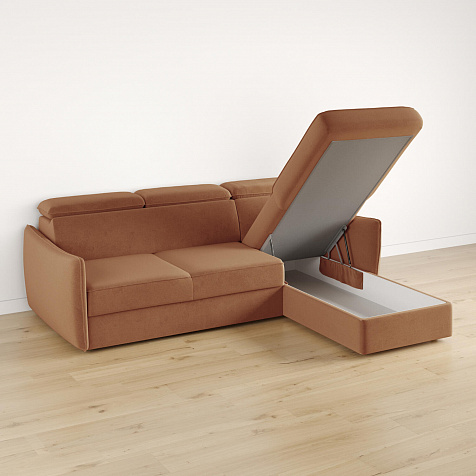 Угловой диван «Торонто» — лаконичная модель станет частью уютной гостиной в современном стиле или лофт. Механизм трансформации «Дельфин» в сложенном виде позволяет сэкономить пространство в комнате, в разложенном — комфортное и удобное спальное место. Три регулируемых подголовника имеют шесть положений, поэтому можно подобрать подходящее положение и с комфортном расслабиться после рабочего дня. В оттоманке установлен ящик для хранения постельного белья и других вещей. Аккуратная отсрочка на подлокотниках и подголовниках завершают строгий образ модели.