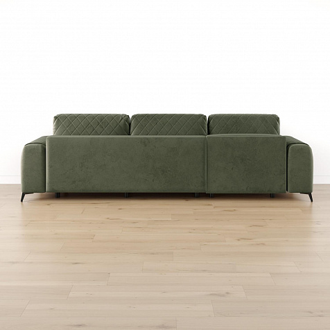 Зонирование пространства. Спинка выполнена в той же обивке, что и весь диван. Модель будет изумительно смотреться как у стены, так и в центре комнаты.