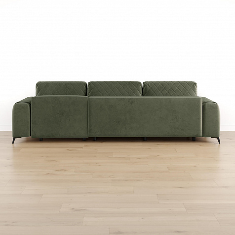 Зонирование пространства. Спинка выполнена в той же обивке, что и весь диван. Модель будет изумительно смотреться как у стены, так и в центре комнаты.