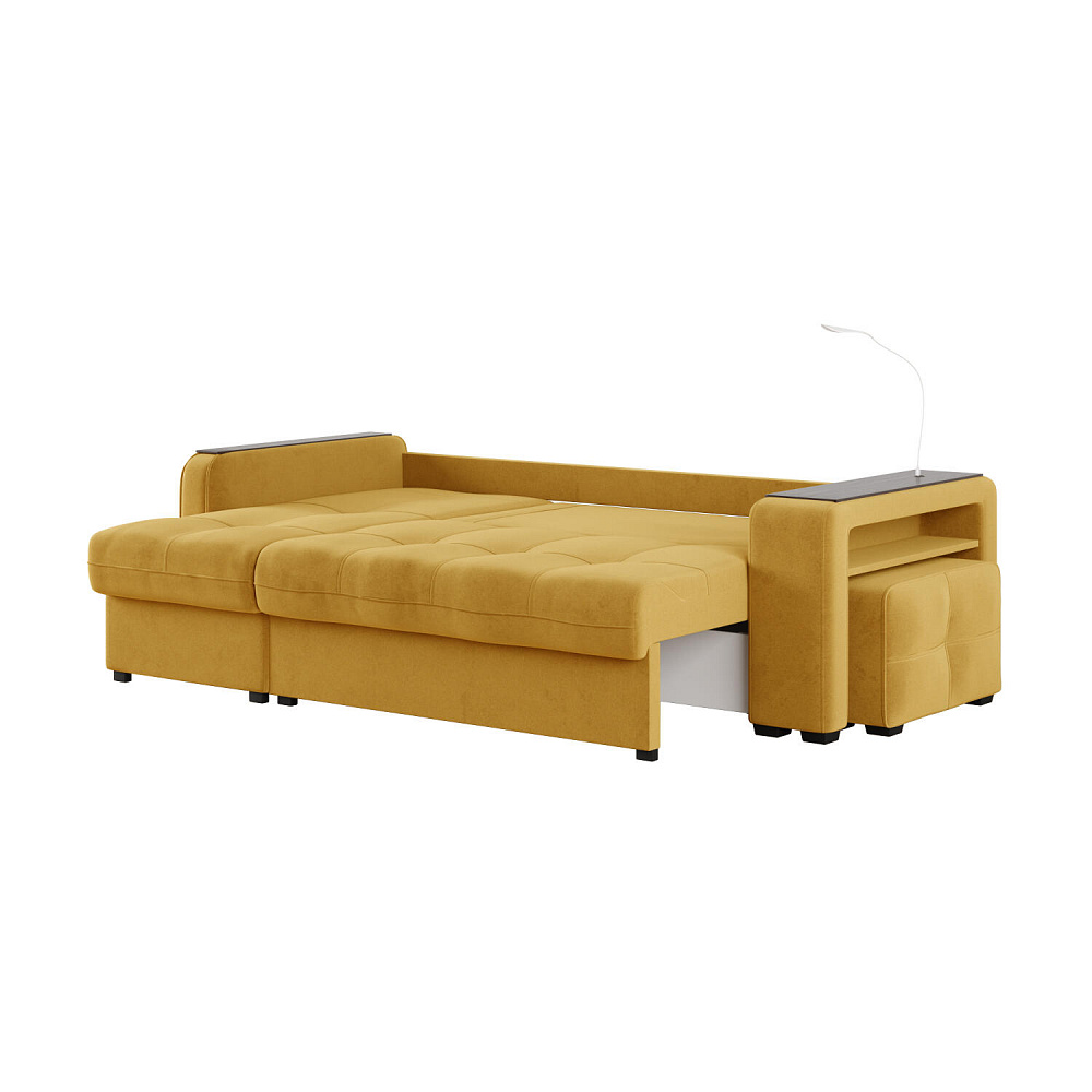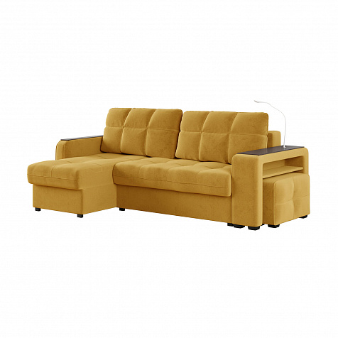 Угловой диван «Киль» подойдёт тем, кто ищет многофункциональную модель для отдыха и работы. Модель со спальным местом отличается технологичными подлокотниками, портативной лампой в комплекте, двумя ящиками для белья и встроенным пуфиком. Вдобавок к большому функционалу диван не перегружен декором, поэтому прекрасно подойдёт к большинству современных интерьеров.