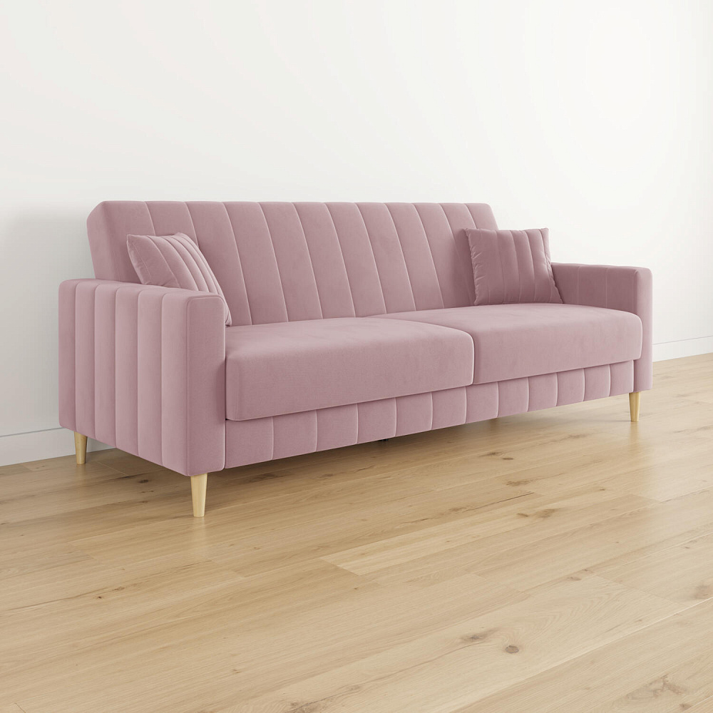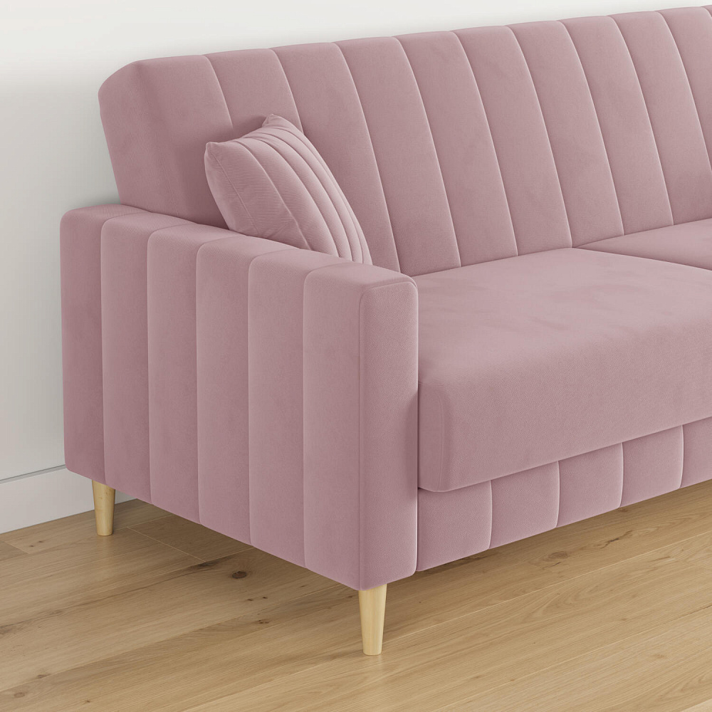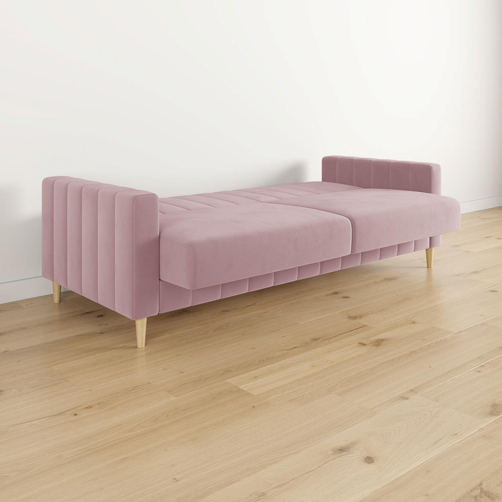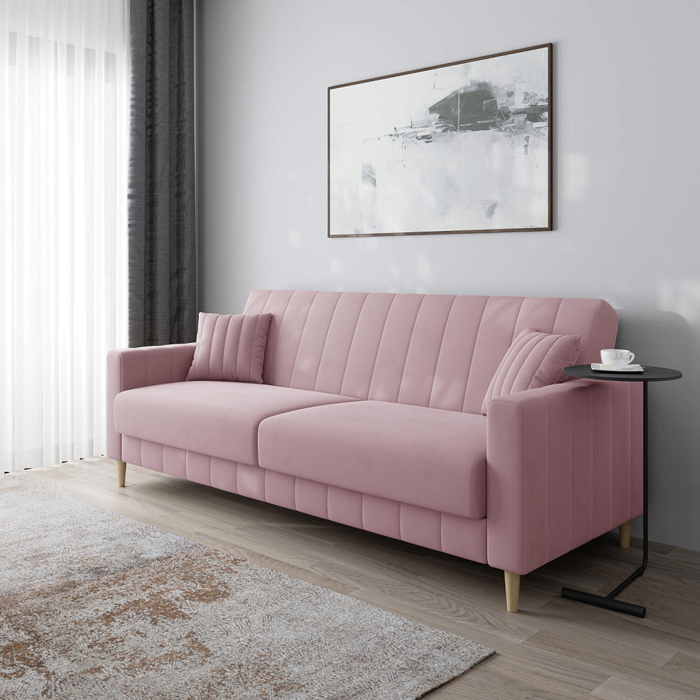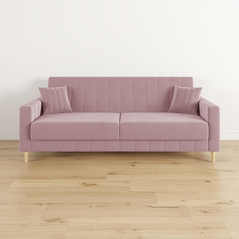 Диван «Бронкс» дополнит гостиную в современном или скандинавском стиле. Модель сочетает в себе минималистичный дизайн, спальное место и ящик для хранения. Задняя часть спинки выполнена в основной обивочной ткани, что дает возможность свободно размещать диван и зонировать комнату. Высокие опоры из натурального дерева создают легкий эффект невесомости и значительно облегчают процесс уборки.
