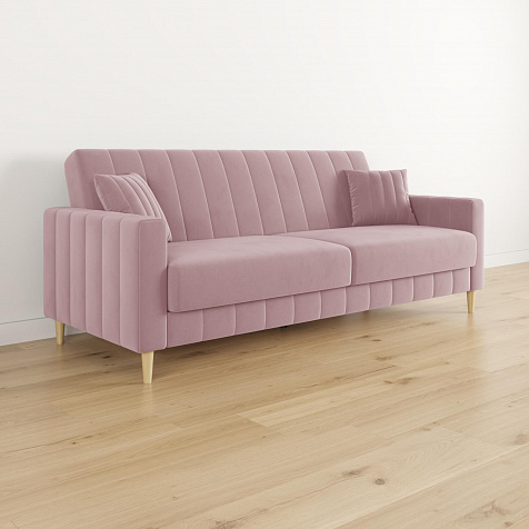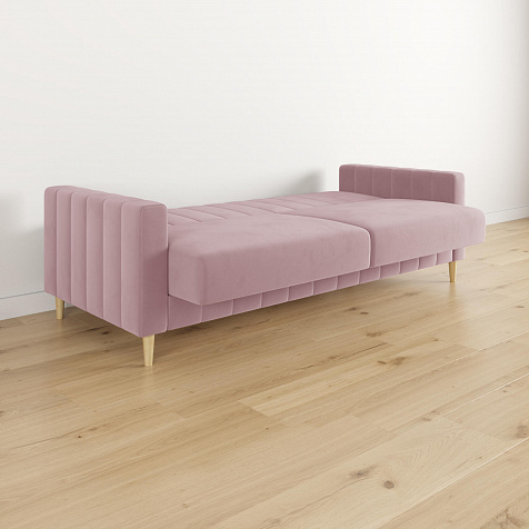 Механизм трансформации «Книжка». Чтобы разложить диван, нужно приподнять спинку и сиденье до щелчка и положить их вниз. Лучше ставить диван на расстоянии от стены, чтобы не двигать его при трансформации.