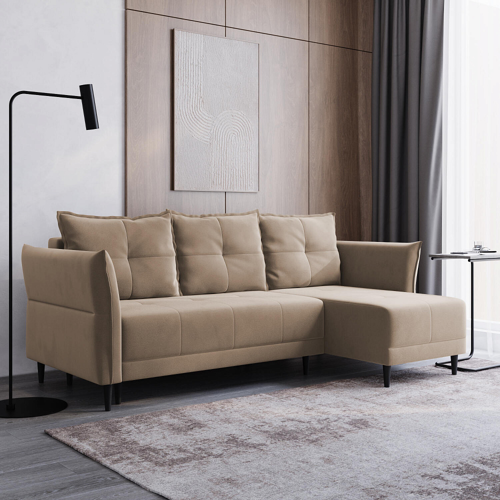 Универсальный угол. Диван подстроится под условия помещения — оттоманка устанавливается как слева, так и справа.