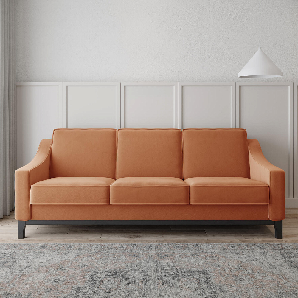 Диван «Клайд» с выбором положения спинки исполнен в уютном, минималистичном дизайне. Простота геометрических форм и отсутствие лишних элементов декора — главная концепция, которая воплощена в данной модели. Задняя часть спинки выполнена в основной обивочной ткани, что дает возможность зонировать комнату и свободно размещать диван. Элегантные высокие ножки добавляют модели изысканности, а прочная и приятная на ощупь ткань подарит истинное эстетическое и тактильное наслаждение.