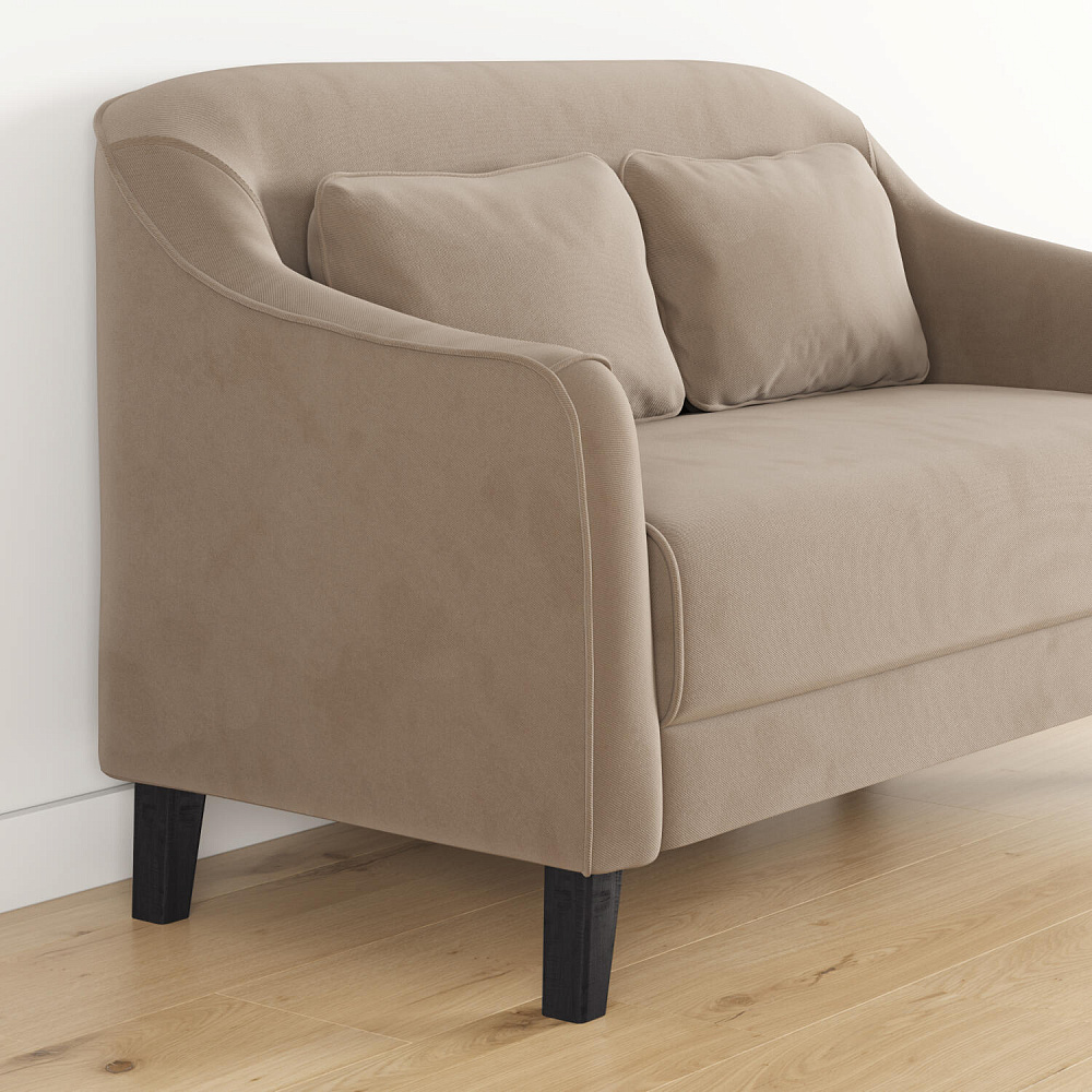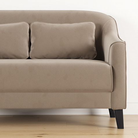 - Деревянные опоры. Высокие ножки из массива березы визуально облегчают конструкцию и открывают доступ к уборке пространства под диваном.