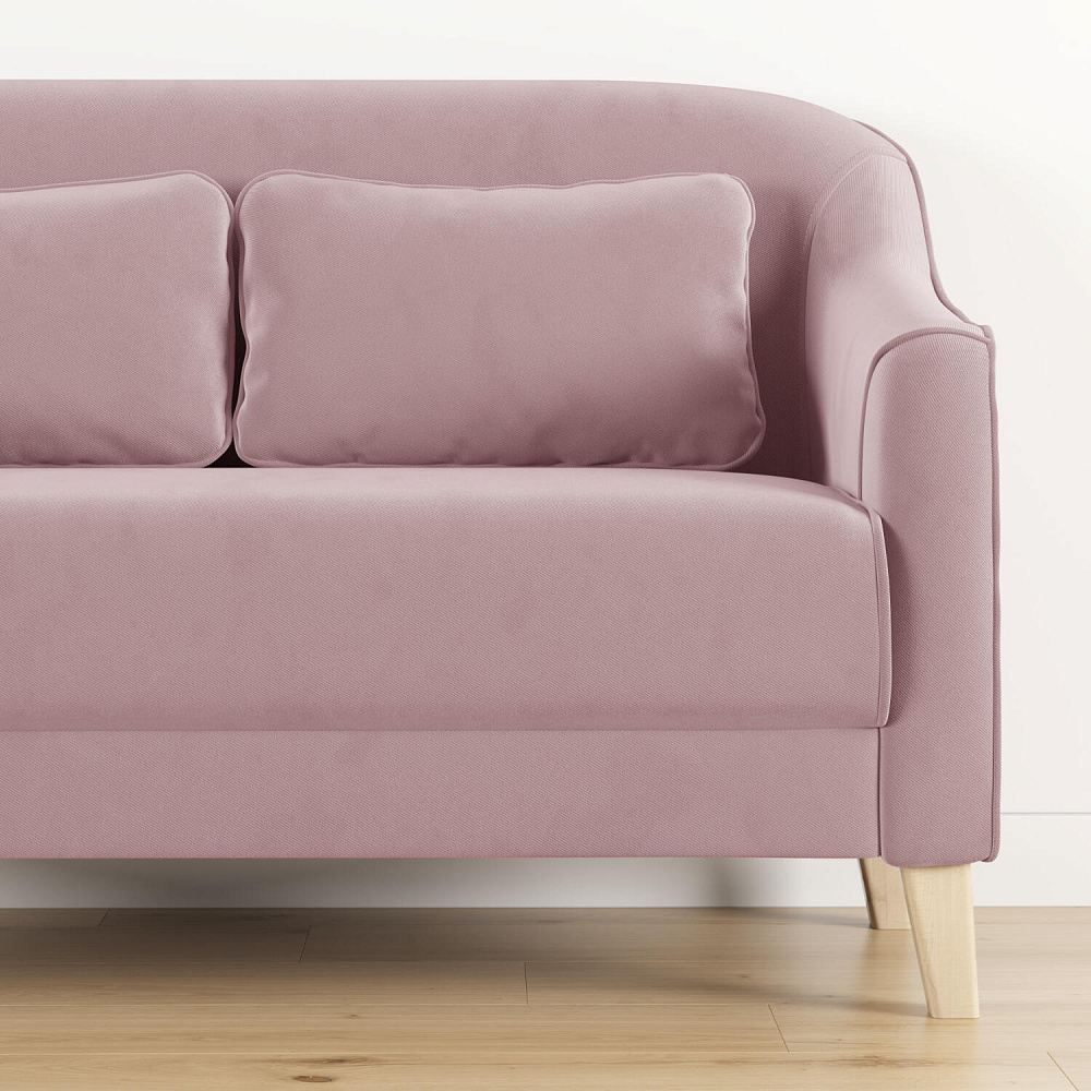 - Деревянные опоры. Высокие ножки из массива березы визуально облегчают конструкцию и открывают доступ к уборке пространства под диваном.