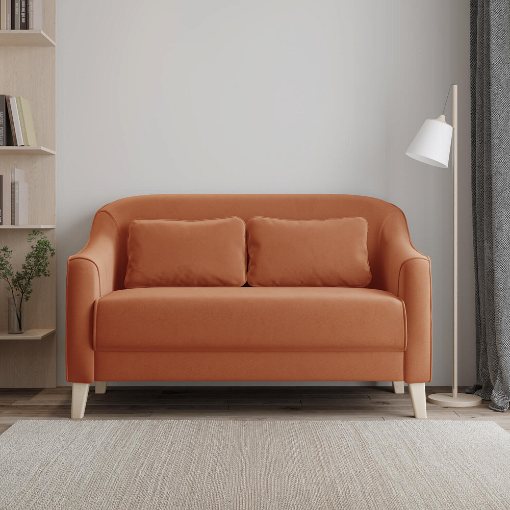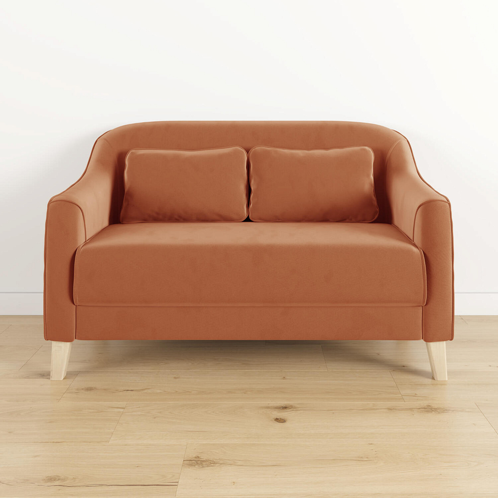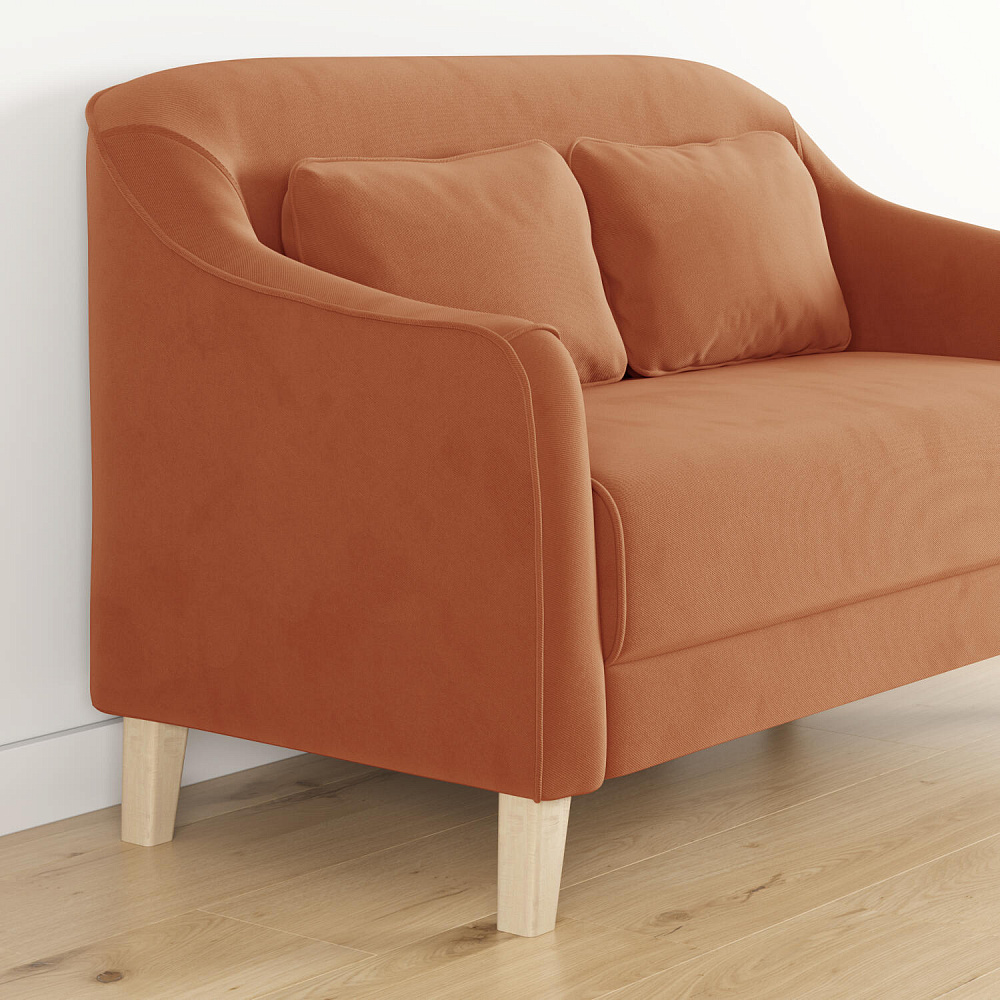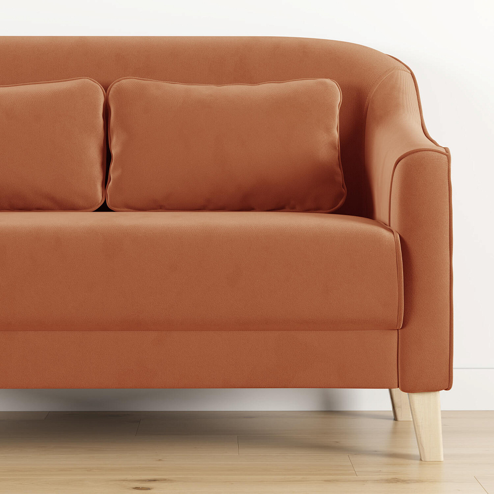- Деревянные опоры. Высокие ножки из массива березы визуально облегчают конструкцию и открывают доступ к уборке пространства под диваном.