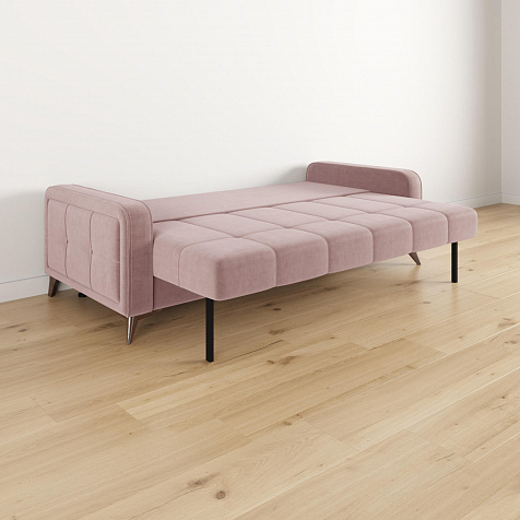 Высокие опоры. Визуально облегчают конструкцию и открывают доступ к уборке пространства под диваном. Диван стоит на 6 опорах, 2 из которых поддерживают выдвижную часть.