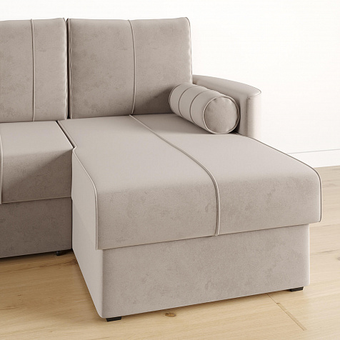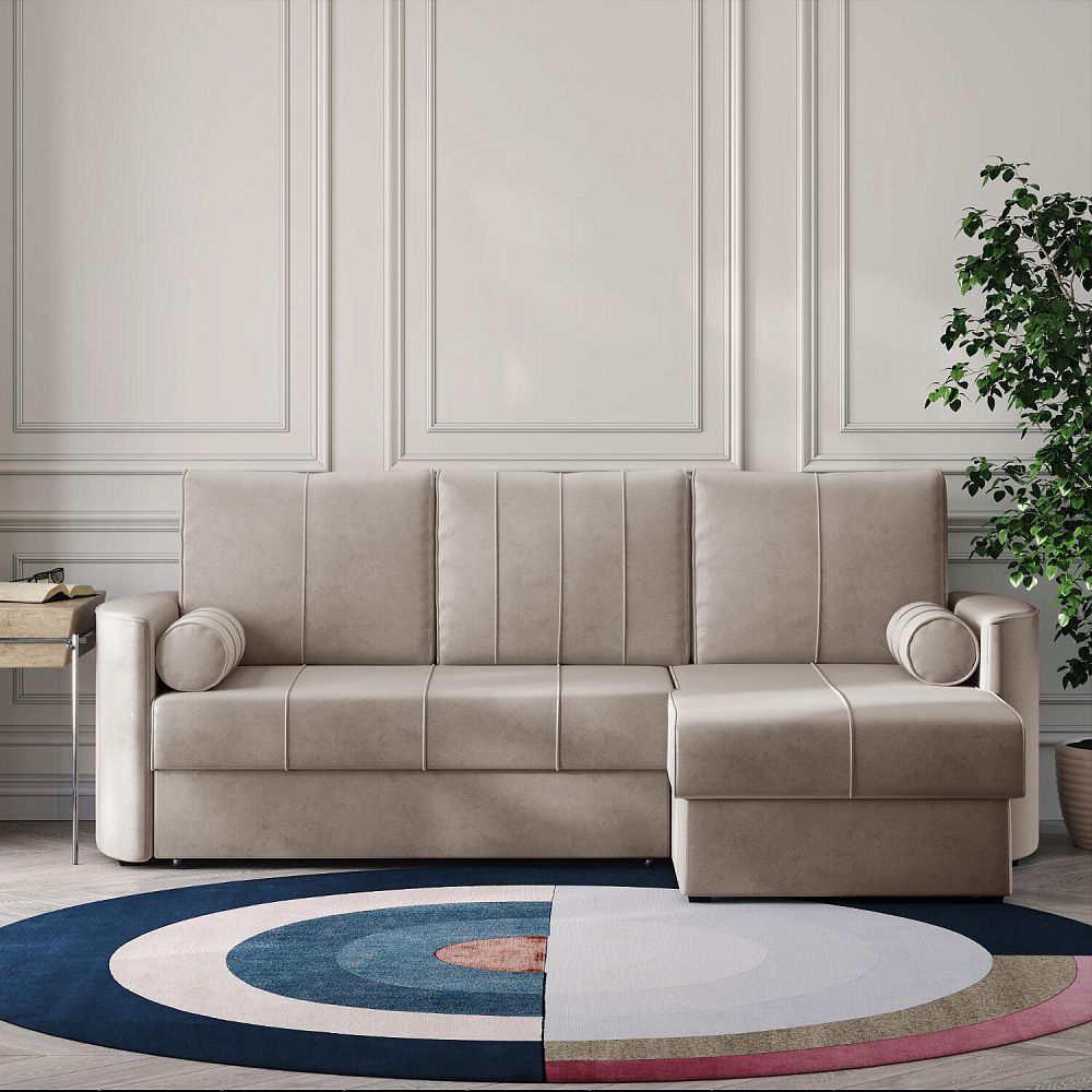 Угловой диван «Амми» — это идеальное сочетание надёжности, простоты и комфорта. Прямая строчка на сиденье и приспинных подушках создает завершённый образ и придает модели мягкую геометричность. Механизм «Дельфин» в сложенном виде поможет сэкономить пространство в комнате и использовать диван для ежедневного сна. Благодаря универсальному дизайну, качественным материалам и эргономичности диван станет главным местом гостиной в современном стиле, сканди или лофт.