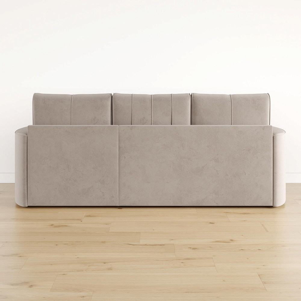 - Обивка из велюра. Обивка дивана выполнена из мягкой и приятной на ощупь ткани, которая пропускает воздух, тянется, устойчива к истиранию и выцветанию.
