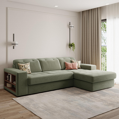 Встроенная декоративная полка. В подлокотник слева встроена декоративная полка из ЛДСП.